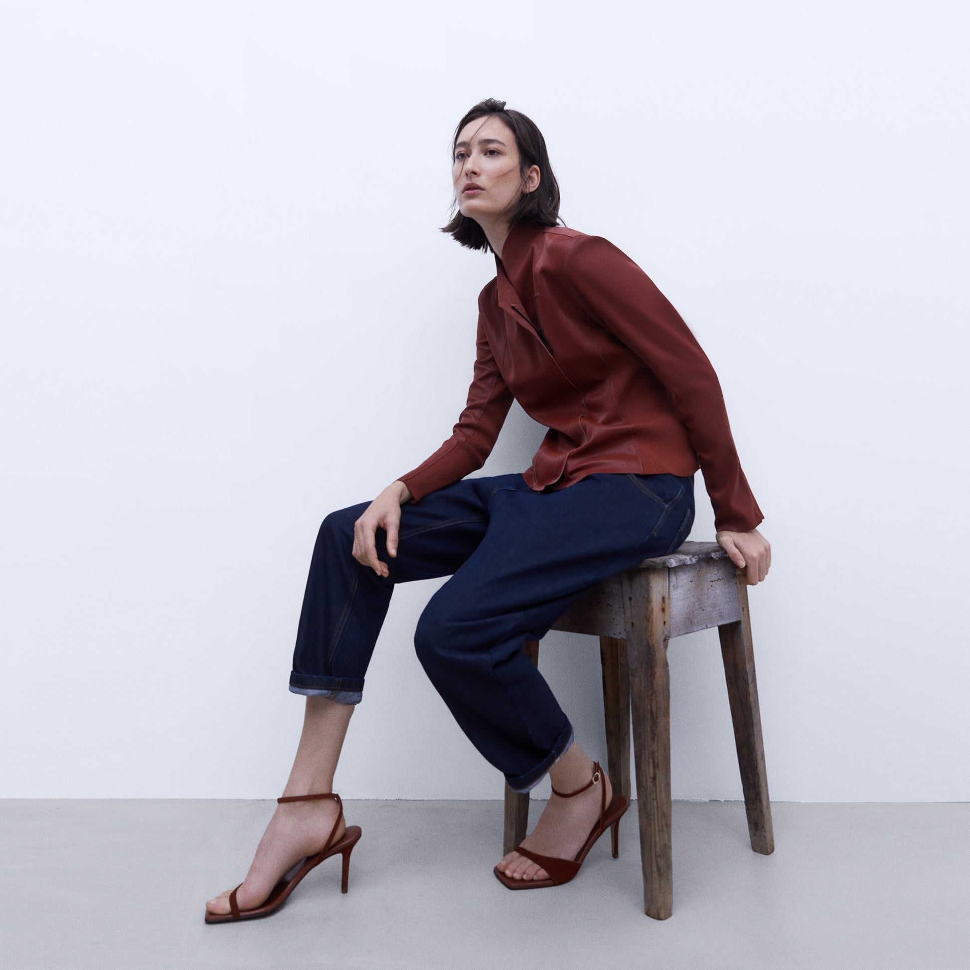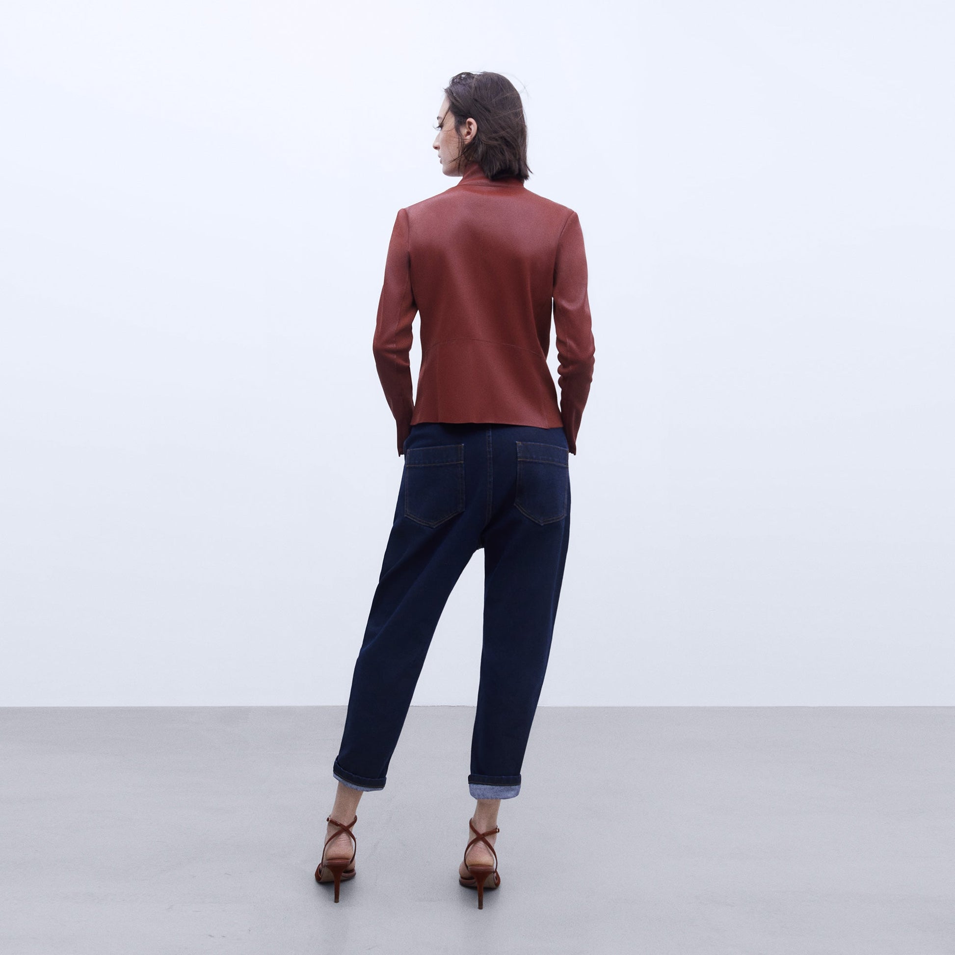 Biker jacket. Single breasted. Front zip fastening. Long sleeve. Zip at the cuff.