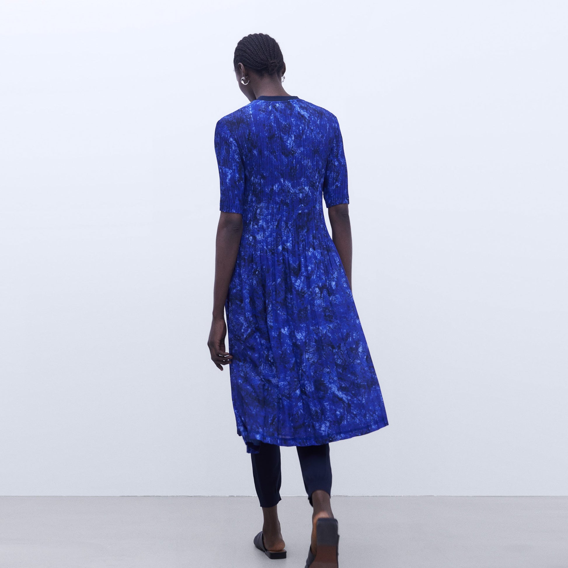 Introducing our stunning printed crinkle dress, perfect for any occasion. This dress features a knitted round neckline and short sleeves, providing both comfort and style. With its knee-length design, it offers a flattering silhouette that will make you feel confident and elegant. The overlock sleeve and hem seam add a touch of sophistication to this already beautiful dress. It also comes with a lining for added comfort and coverage.