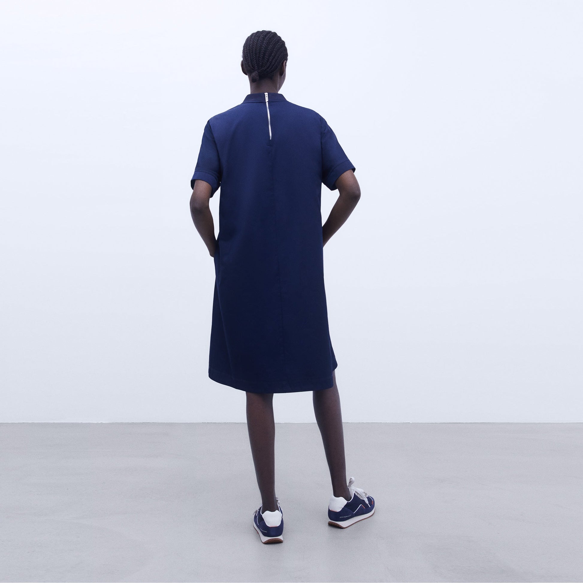 A-line crew neck dress with a flattering silhouette that accentuates your curves. The ribbed neckline adds a touch of elegance to the overall design. Featuring short bell raglan sleeves for a feminine and stylish look. The rear zip fastening ensures easy and convenient dressing. Complete with a side pocket for added functionality.