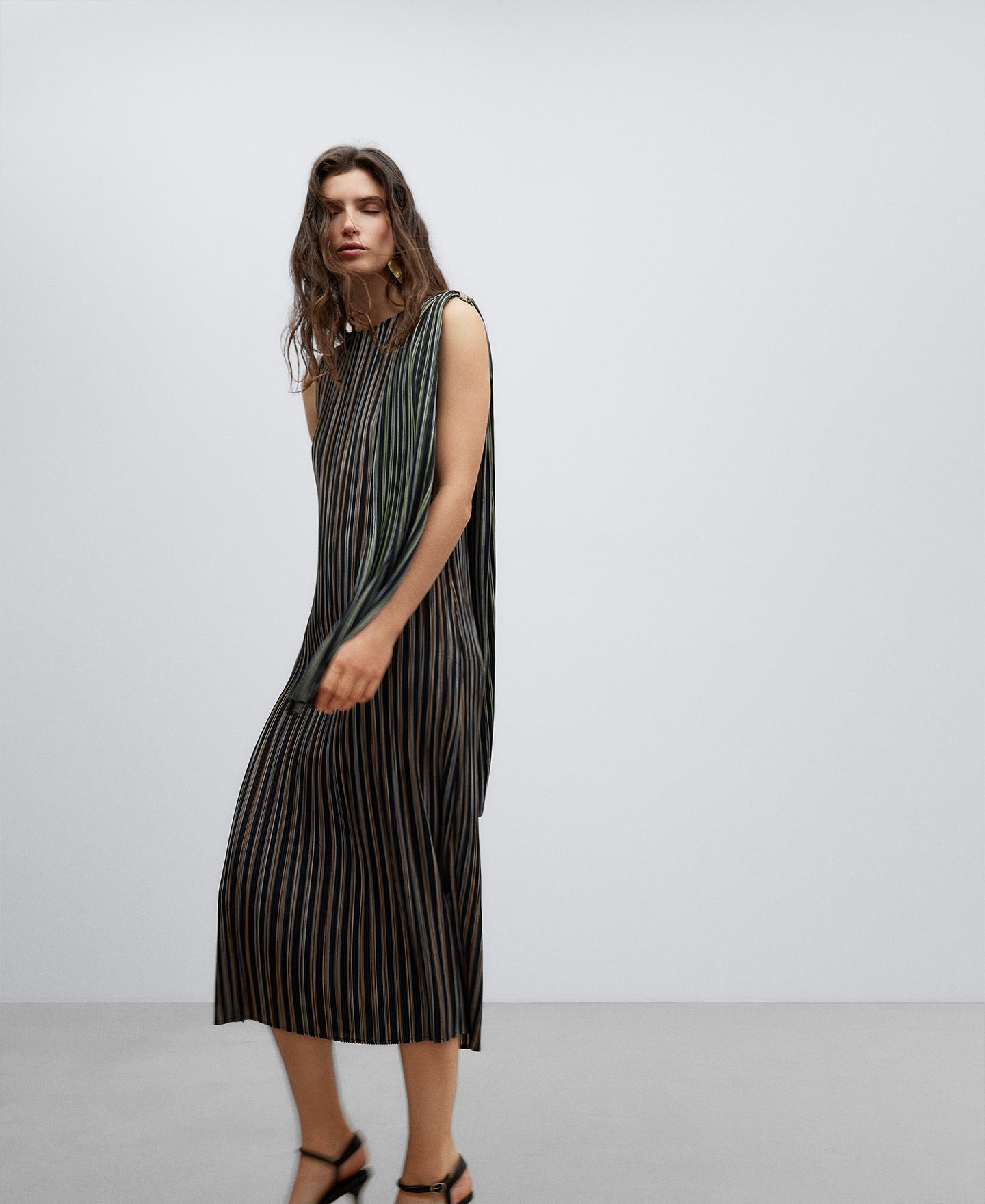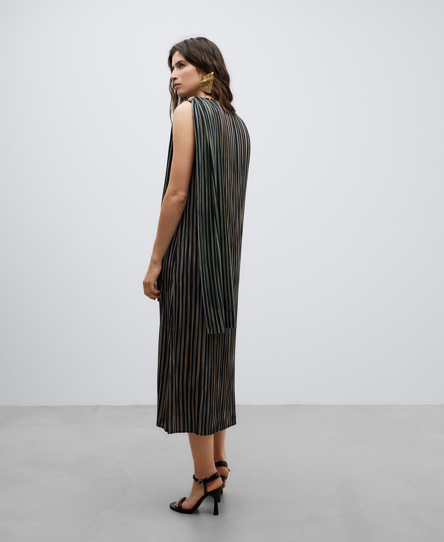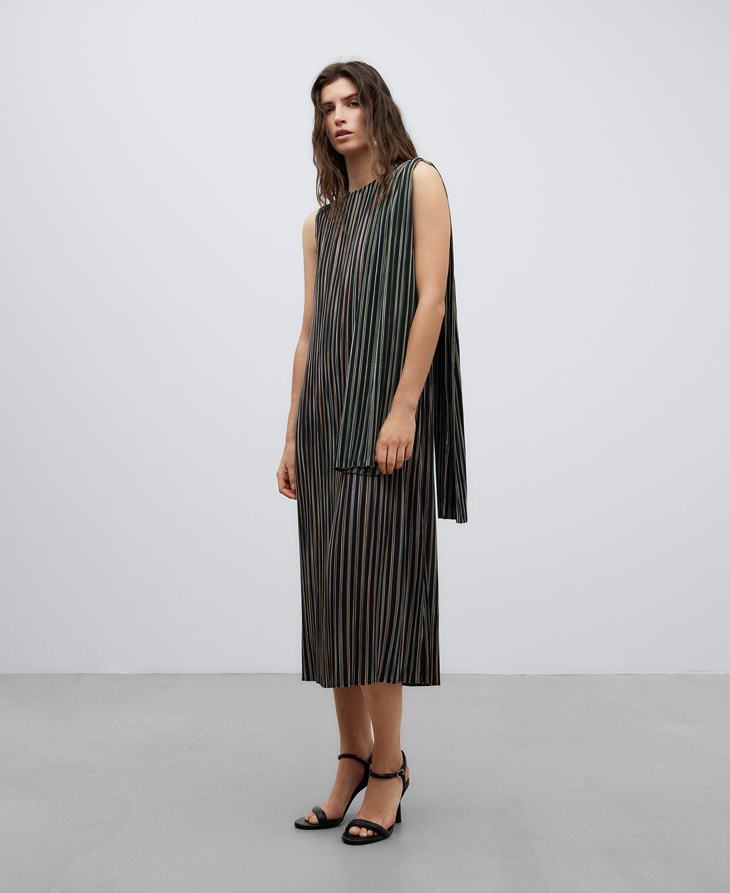 Recycled Crinkle Dress With Bow Woman. Sleeveless. Crew Collar.