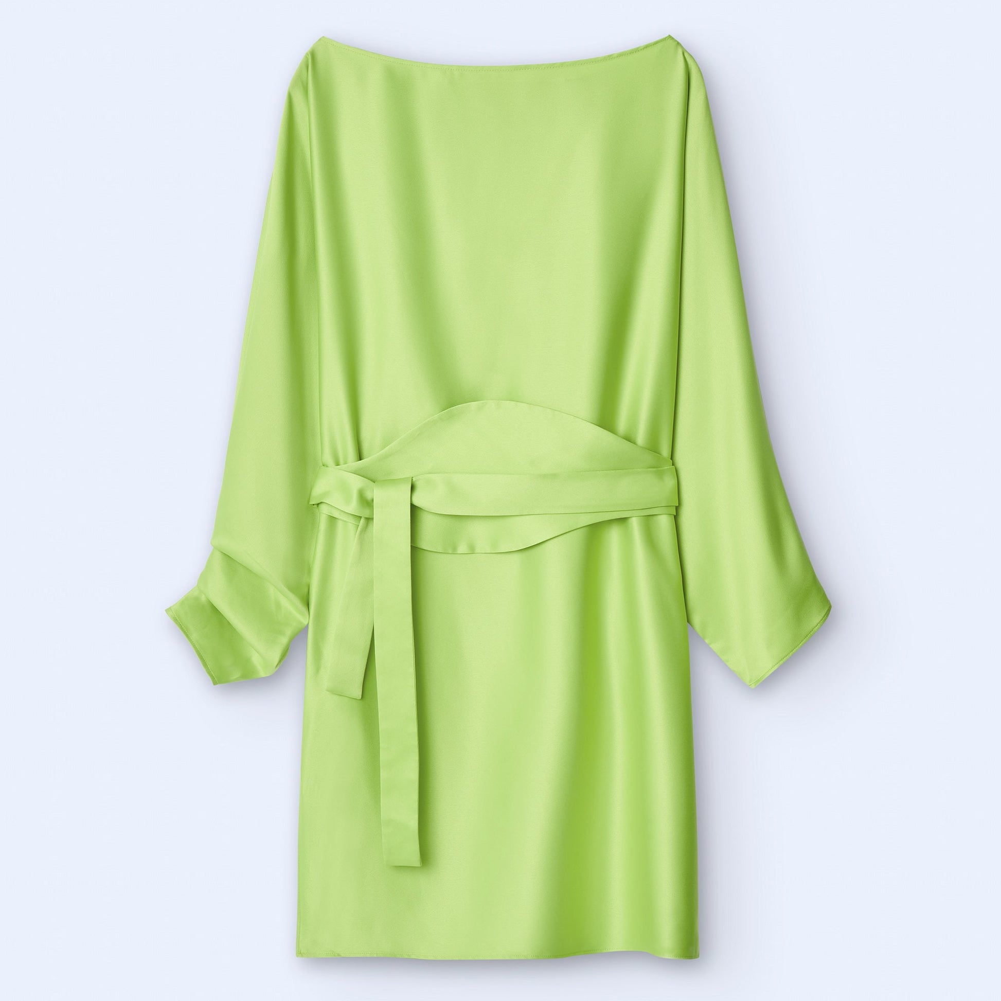 To keep this dress looking its best, we recommend hand washing it in water with a maximum temperature of 40ÂşC. Avoid using bleach or tumble drying, as this can damage the fabric. Iron the dress at a maximum temperature of 110ÂşC to remove any wrinkles. For professional cleaning, we recommend a soft dry cleaning process. Lastly, remember to wash the dress inside out to preserve its color and quality.