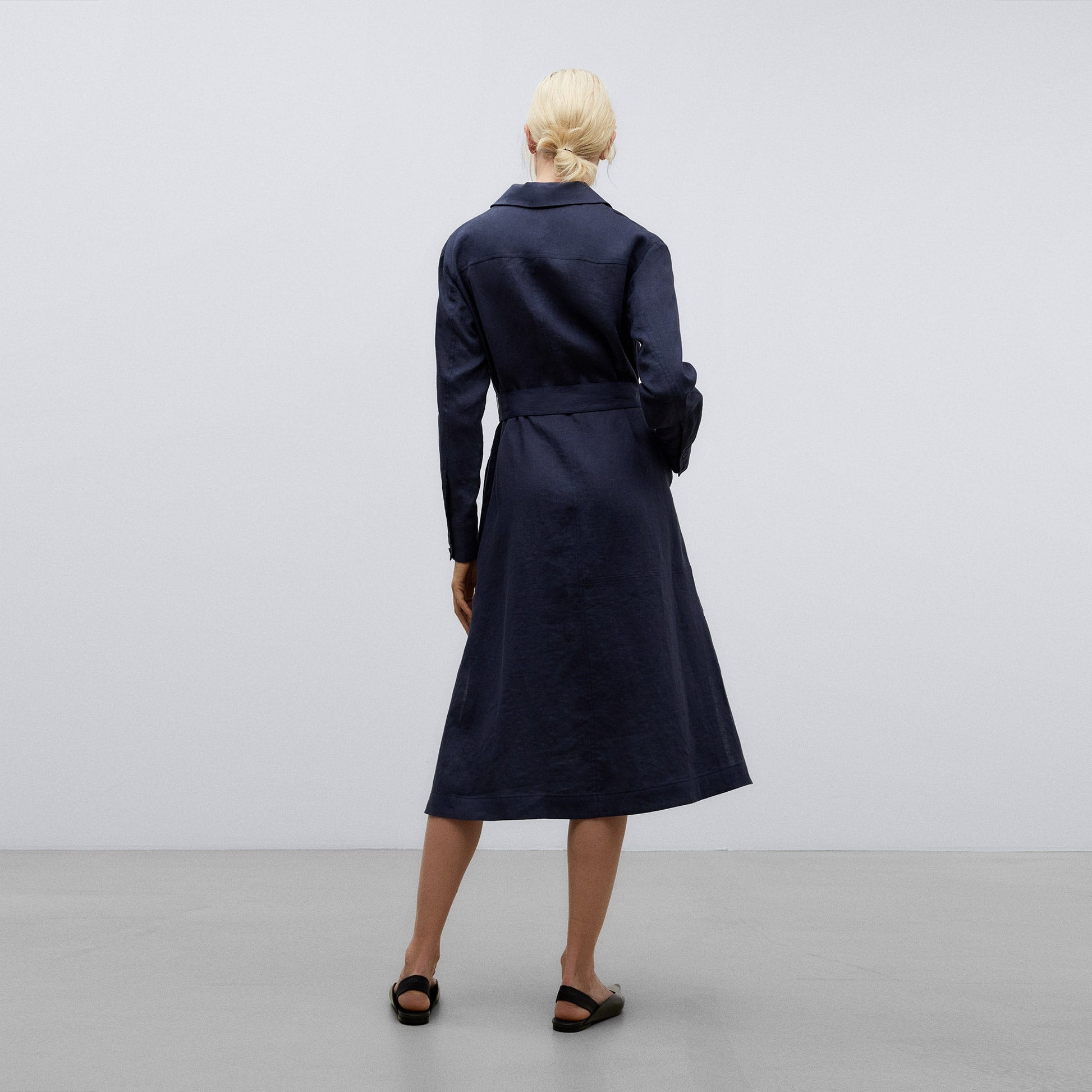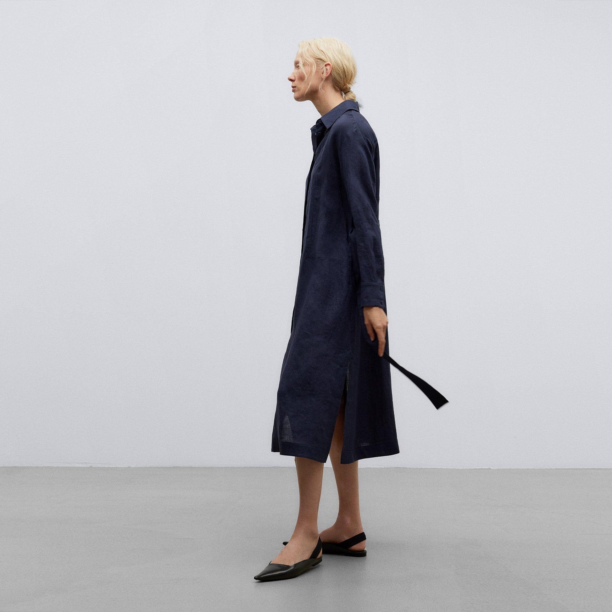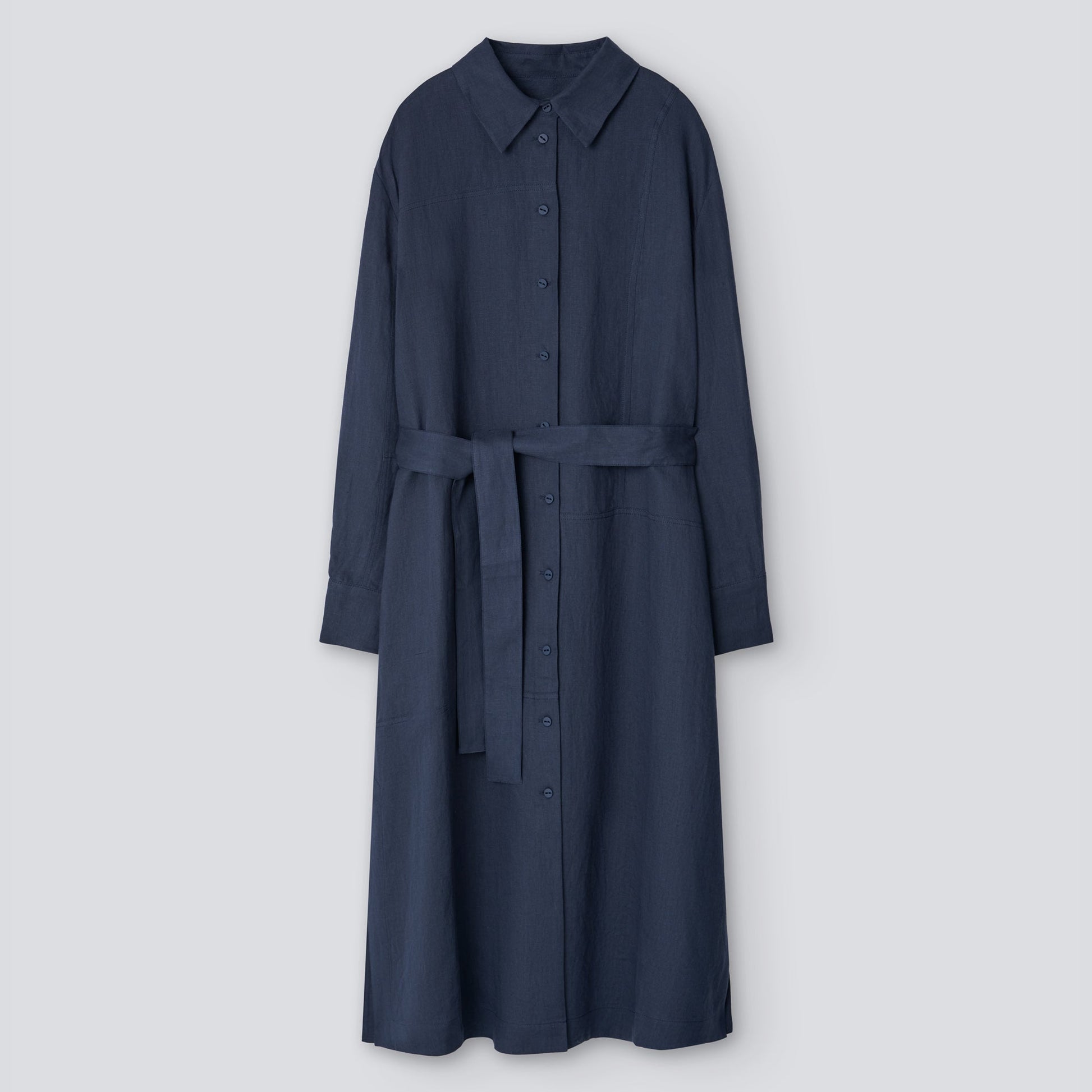 Dark Blue European Linen Shirt-Like Dress
