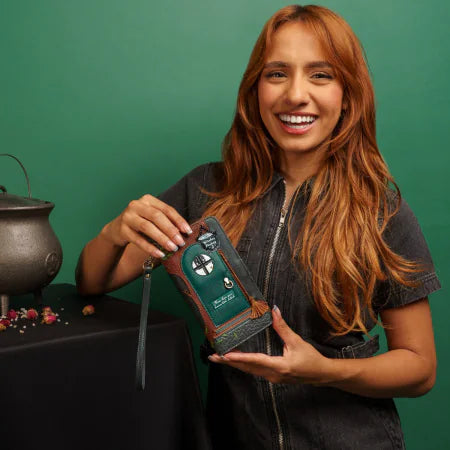 Last but not least, the Witches Pantry Universal Flip Phone Case is here! With an expandable grip, sliding camera track, and wrist strap, it’s as practical as it is magical. The flap closure keeps your phone secure (though a screen protector is always a wise move), and inside you’ll find card slots and a slip pocket. Its eerie artwork matches your Witches Pantry bag and wallet, creating a perfectly haunted look. Prepare to be spellbound!