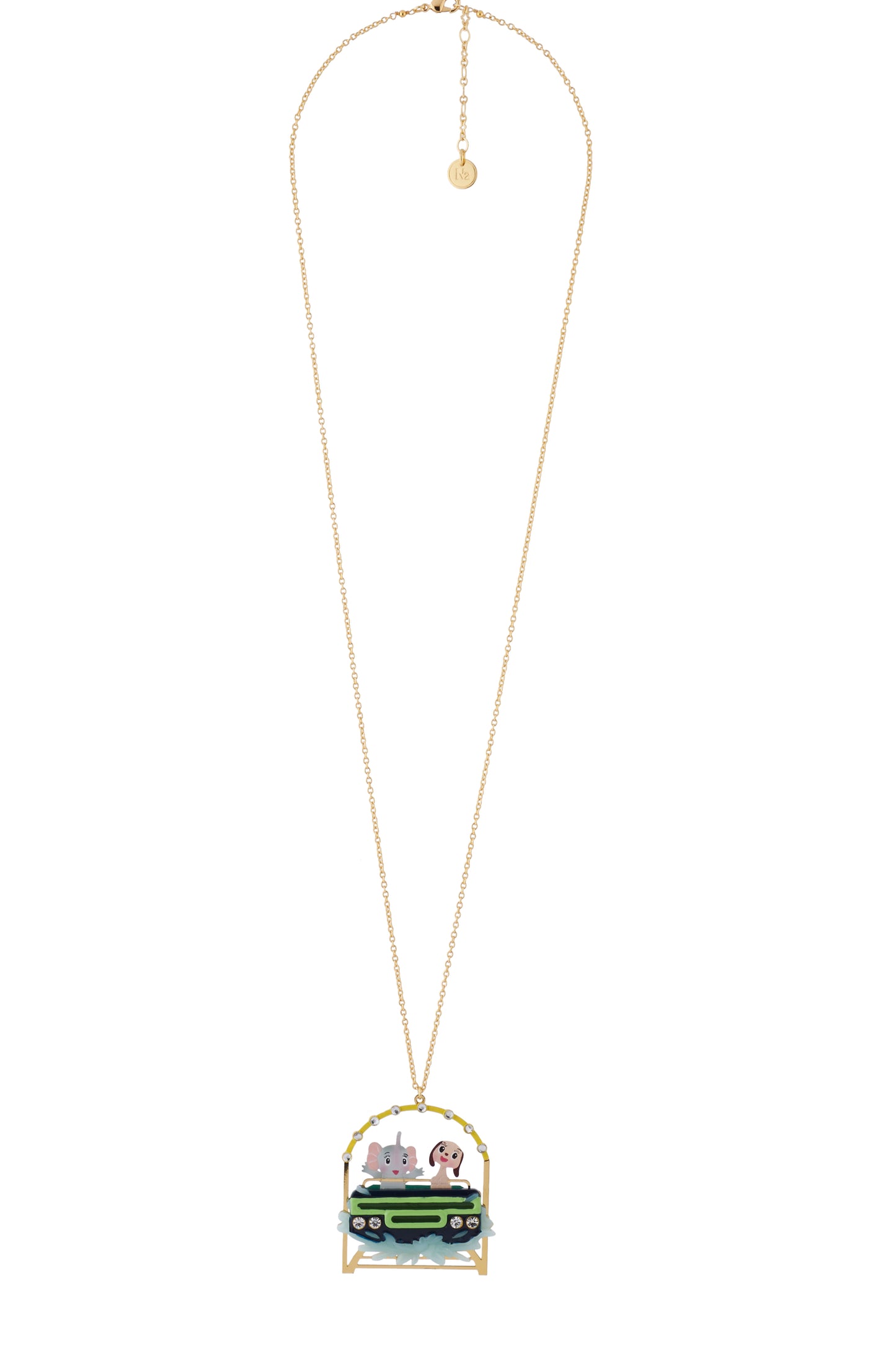 Experience the magic of a retro funfair with the Joyland Necklace from Les Nereides' N2 collection. This whimsical piece features hand-painted enamel and rhinestone detailing on a gold plated brass pendant, depicting classic fairground attractions such as roller coasters, the Ferris wheel, bumper cars, and shoot-a-duck games. The necklace comes in N2 packaging and is nickel-free. With a pendant length of 5.3cm and width of 4.8cm, and a chain length of 70cm with a 5cm extension, this piece is perfect for adding a touch of playful nostalgia to any outfit.