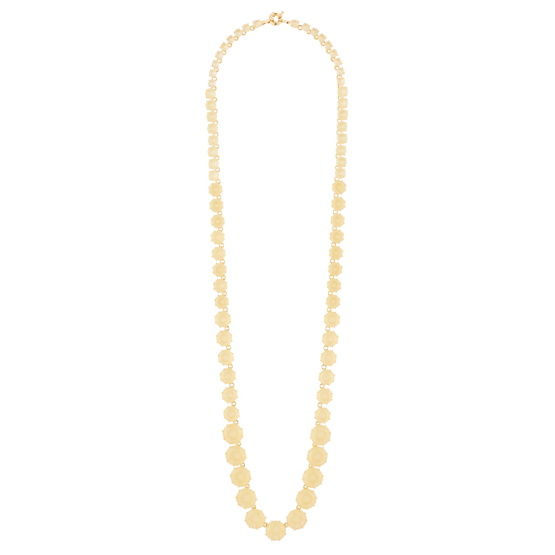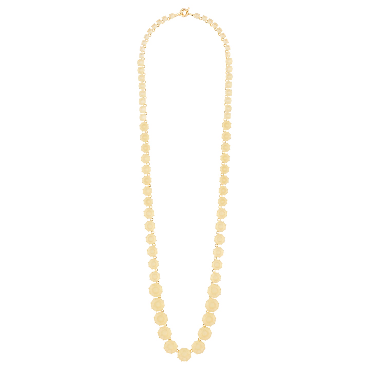 Introducing the exquisite Les Nereides La Diamantine Citrine Necklace | AHLD3191. This stunning piece is part of our best-selling collection, featuring faceted crystal delicately set in gold-plated brass. Crafted with utmost precision, these luxurious jewels are a true testament to our brand's commitment to quality and elegance. Each piece is thoughtfully packaged in Les Nereides packaging, adding an extra touch of sophistication. Made with 14k gold plated brass and hand-faceted crystal, this necklace is not only visually captivating but also nickel-free, ensuring comfort and safety. With a length of 80cm, it effortlessly adds a touch of glamour to any outfit. Elevate your style with Les Nereides and indulge in the timeless beauty of the La Diamantine Citrine Necklace.