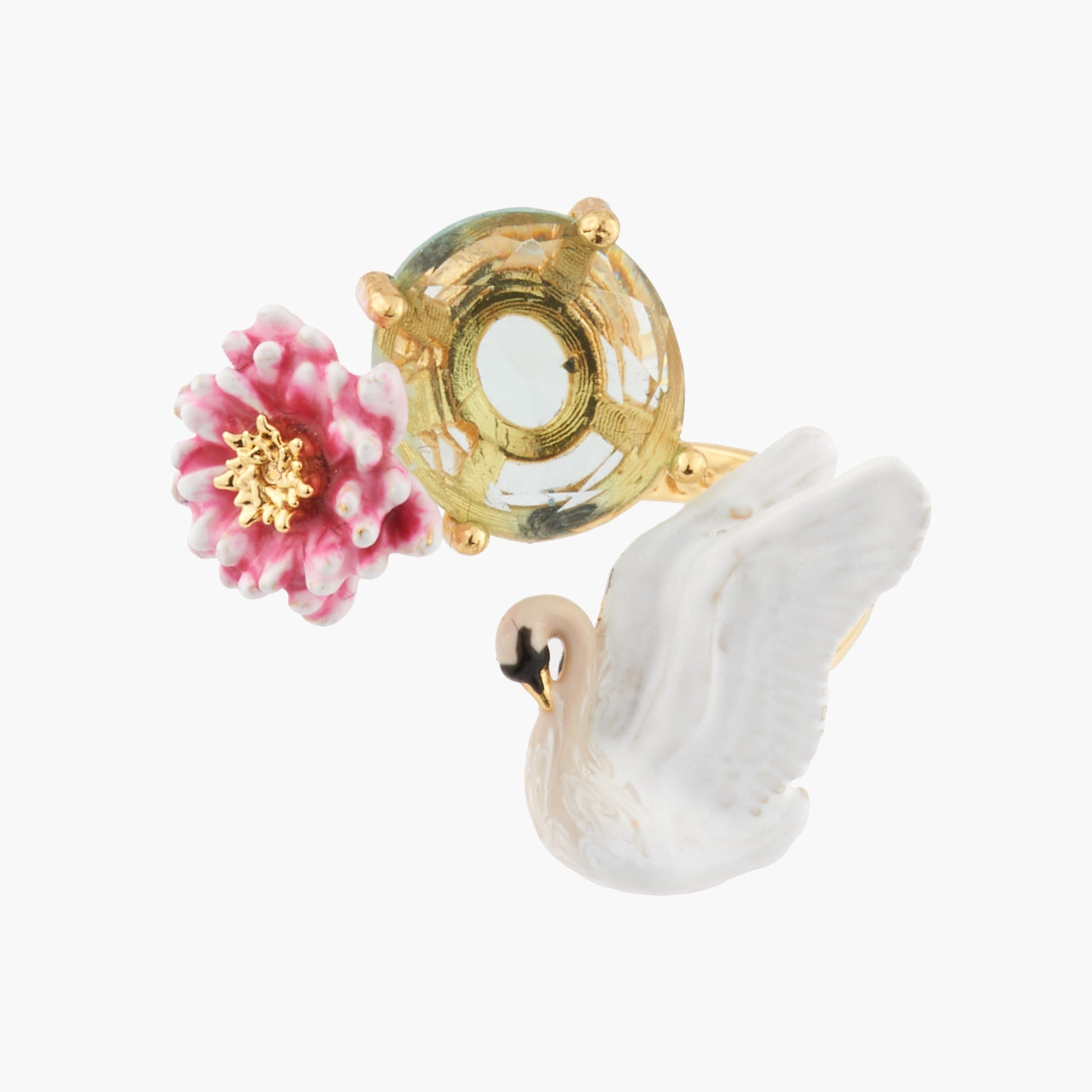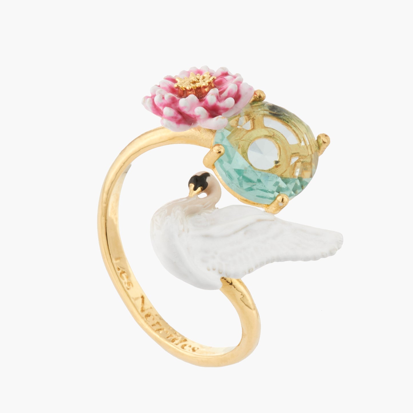 White Swan And Pink Water Lily Adjustable Rings | AKCY602