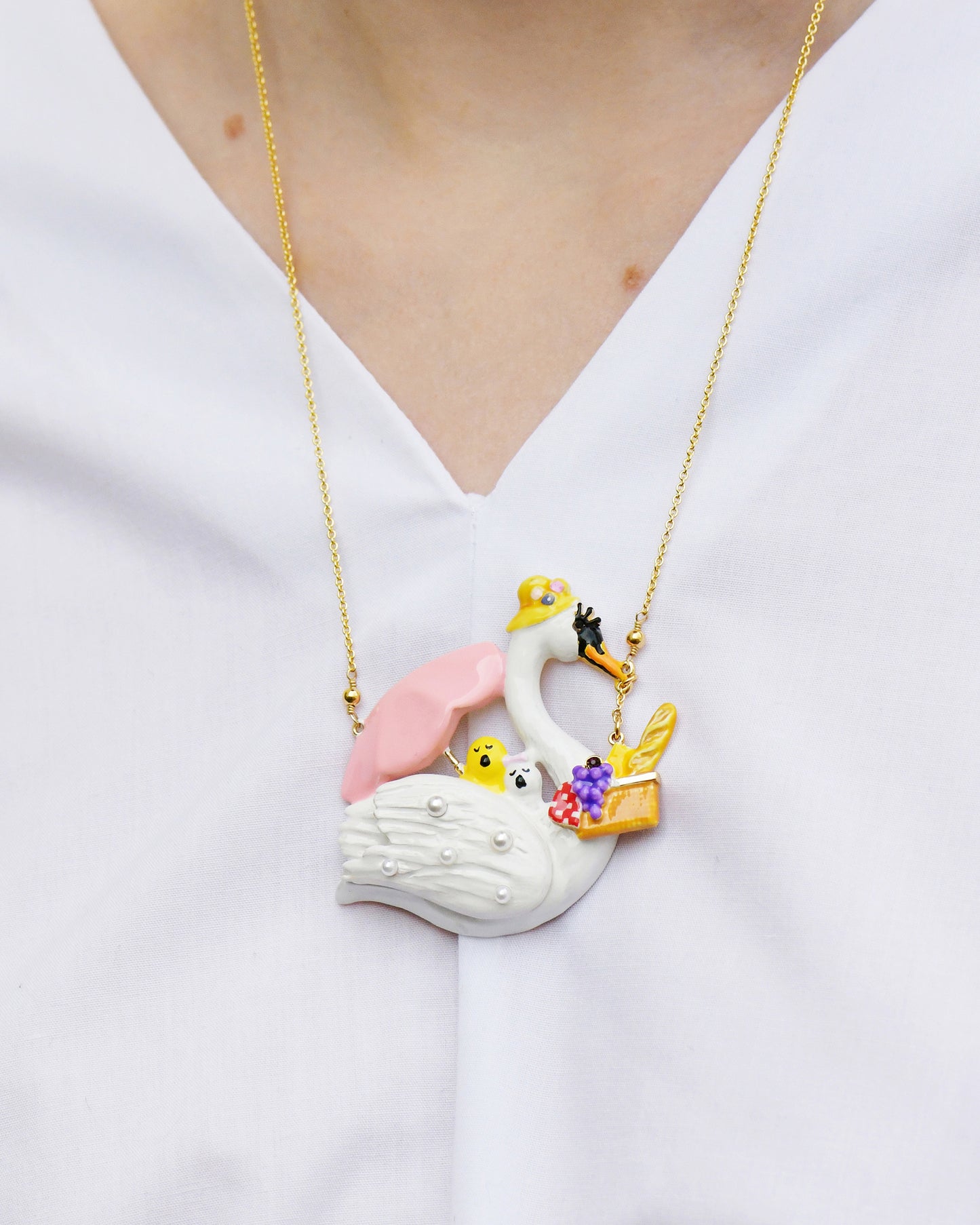 Introducing the Gentiment Joyeux Necklace from Les Nereides, a stunning piece that exudes elegance and sophistication. Crafted from high-quality gold plated brass (18k), this necklace features a beautiful combination of rhinestone, fantasy pearl, and hand-painted enamel. It is also nickel-free, making it safe for those with sensitive skin. The necklace measures 45cm in length, with an additional 5cm extension, and the pendant measures 4.5cm in length and 5.5cm in width. Perfect for any occasion, this necklace is sure to add a touch of luxury to any outfit. Shop now and experience the beauty of Les Nereides.