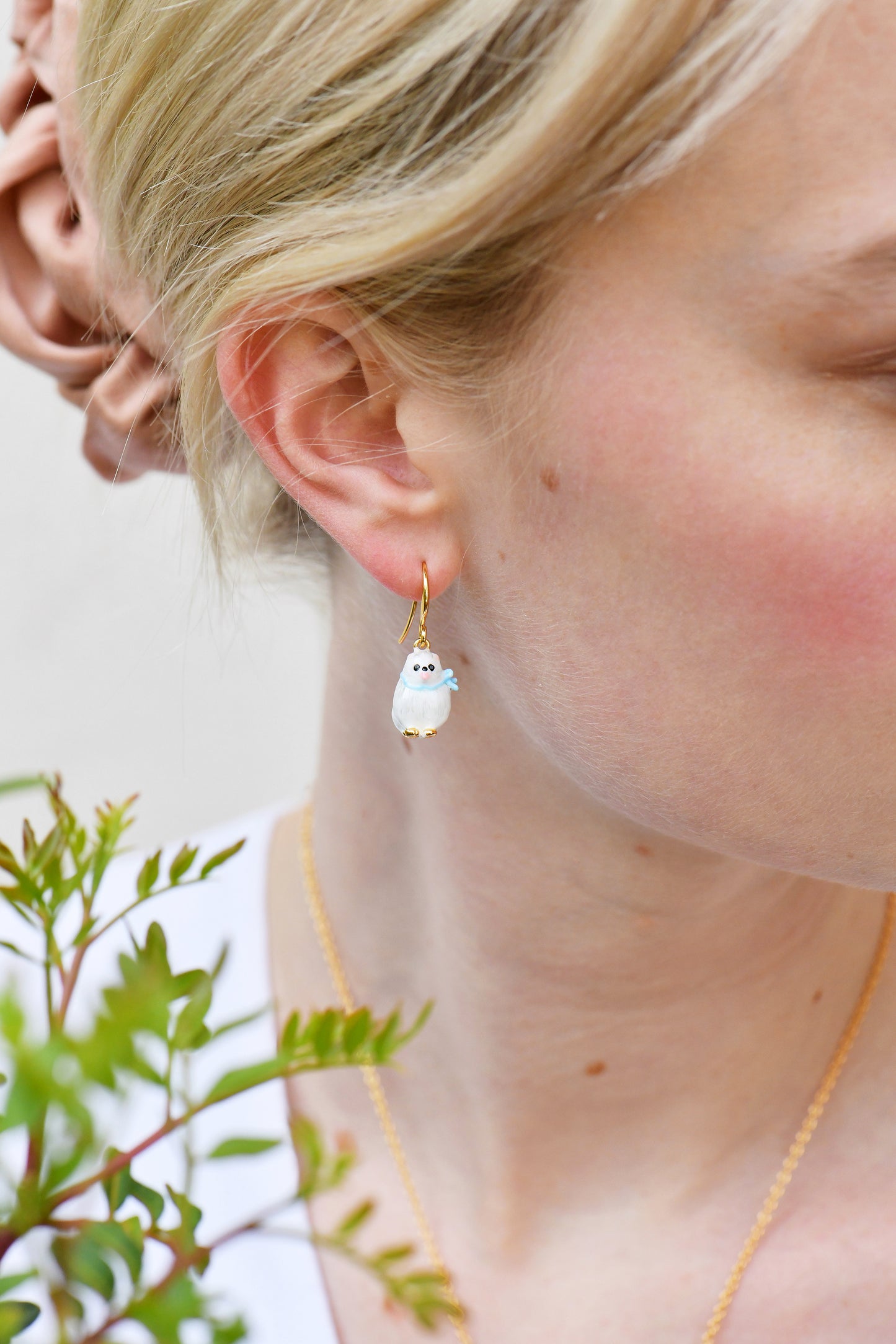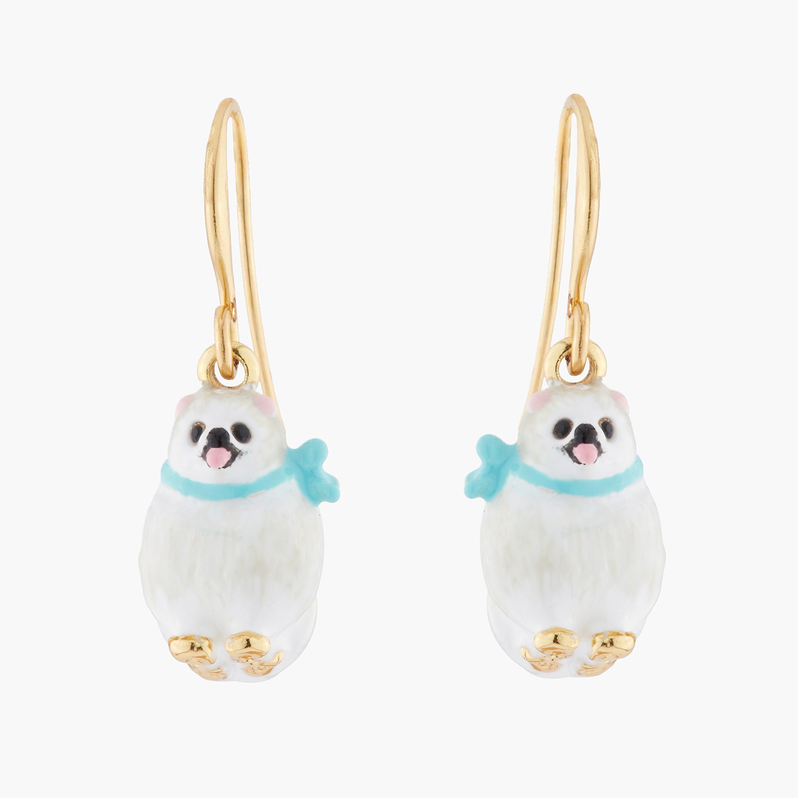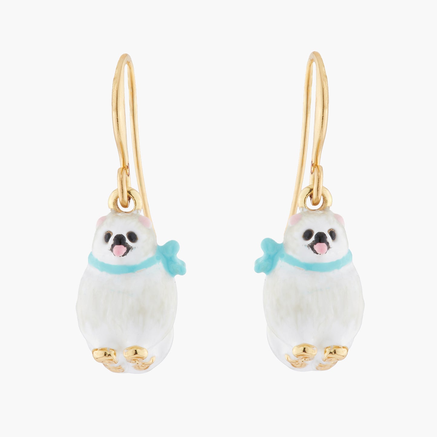 Introducing the latest addition to Les Néréides Loves Animals Collection - the charming white Pomeranian. These adorable dog earrings are the perfect accessory to add a touch of whimsy to any outfit. Crafted from gold-plated brass and hand-enamelled, this pair of hook earrings is a true testament to our commitment to quality and craftsmanship. Please note that for hygiene reasons, stud, hook, and dormeuse earrings cannot be exchanged or returned. With a length of 2.5cm, a width of 1cm, and a weight of 10.94g, these earrings are the perfect size to make a statement without being too heavy. Add them to your jewellery collection today and let the magic of Les Néréides brighten up your day.