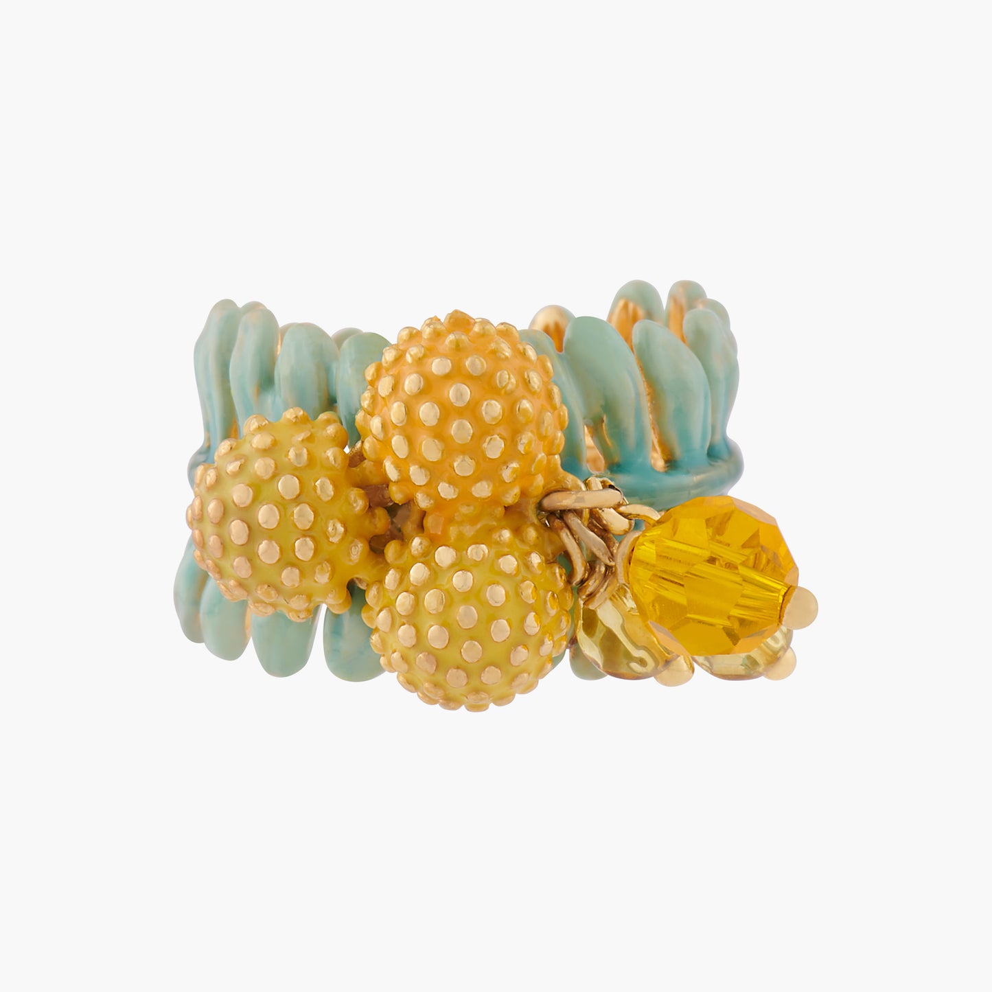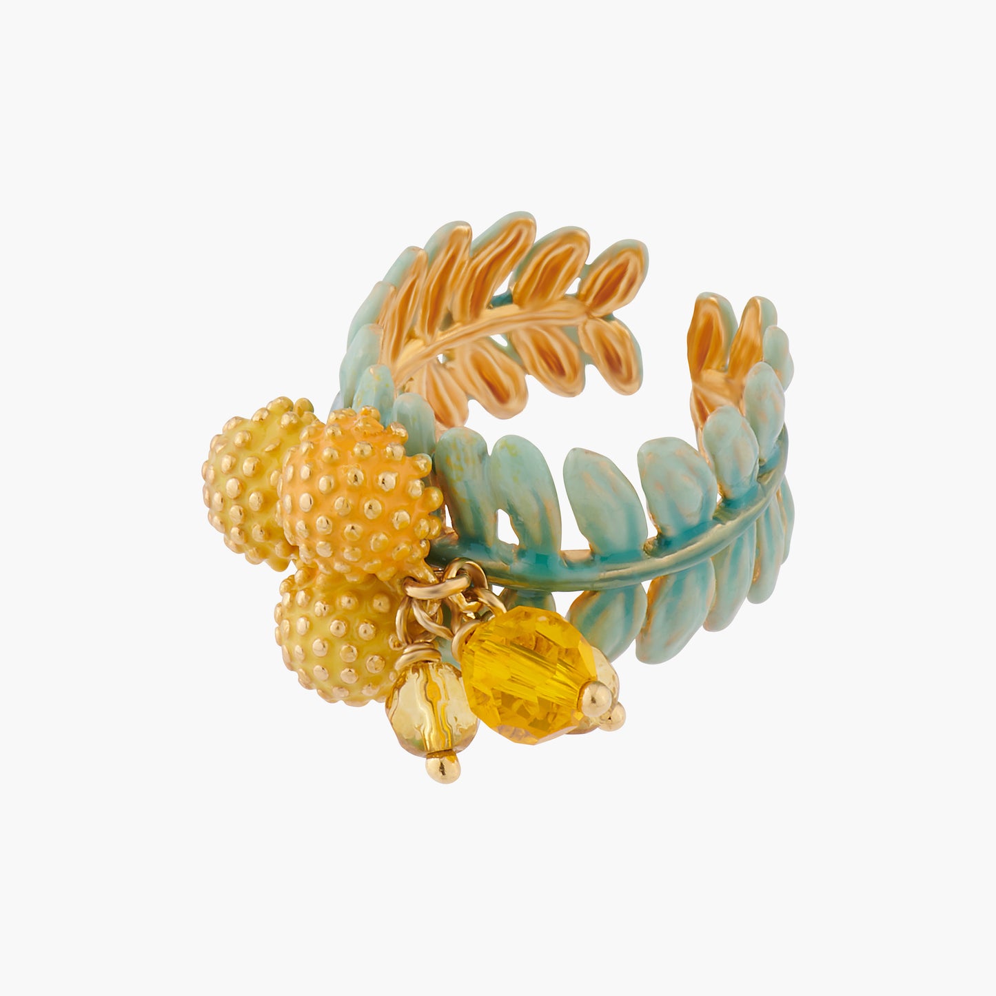 The Mimosa flower - bringing a touch of summer to the winter months! Adorn your hand with this beautiful Mimosa, delicately enamelled by hand according to La Maison Les Néréides know-how and tradition. An adjustable ring which goes perfectly with our beautiful Mimosa Bib Necklace. An exquisite Mimosa jewellery set just for you! Don't miss out on the invigorating scents of our designer jewellery from the Summer Scents collection.