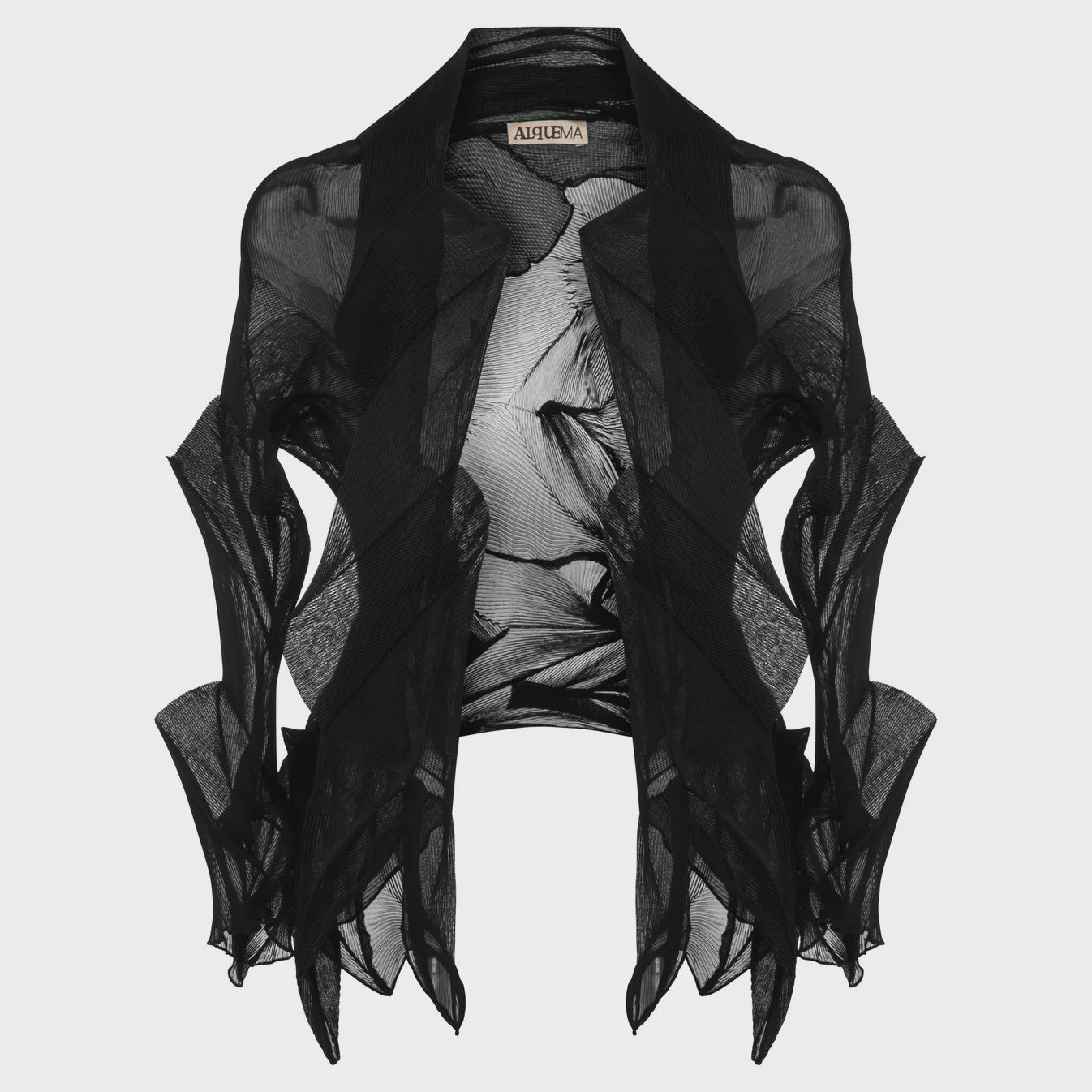 The architectural Jacqui Bolero is an ideal piece to wear with many of the Alquema dresses, perfectly paired with the Lara Dress. The form it creates around the body takes on a unique shape of it's own.