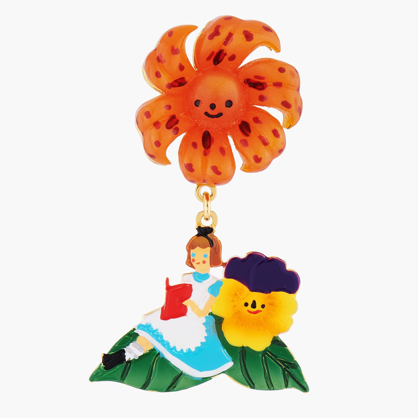 Embrace your inner child with Les Néréides' Alice Reading A Book Earrings. These clip-on earrings are part of the Alice's Dream collection, signed N2, and feature a charming 3D resin design of Alice engrossed in a book. The earrings are made of gold-plated brass and hand-enamelled, ensuring their quality and durability. With a length of 5.14cm, a width of 3cm, and a weight of 13g, these earrings are the perfect addition to any outfit. Whether you're a fan of Alice in Wonderland or simply appreciate whimsical accessories, these earrings are sure to delight. Add them to your collection today and let your imagination run wild.
