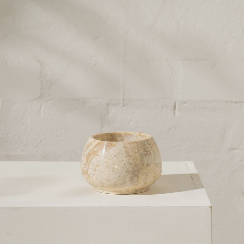 These beautiful bowls are made using natural travertine marble. Each item is unique with different colouring and natural patterning. Marble may contain small cracks, holes and pits that are characteristic of this authentic product.