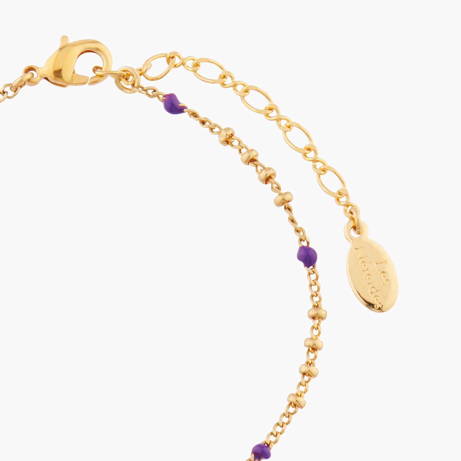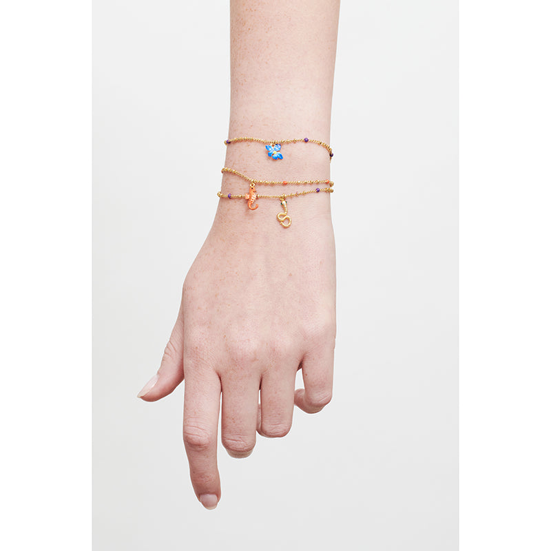 Thin Bracelet: chain made up of gold-plated brass, hand-enamelled brass beads, pendant made up of gold-plated and hand-enamelled brass.