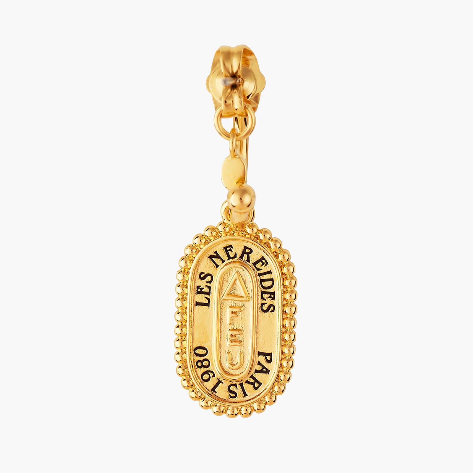 Introducing the Aries Zodiac Sign Earrings, the latest addition to our Constellation collection. These trendy earrings feature the Aries zodiac symbol and a sparkling star on one side, and the corresponding element on the other. Perfect for those with a fiery passion, including Sagittarius, Leo, and Aries signs. These earrings make a great gift for Valentine's Day or a birthday. Discover your sign or surprise a friend with our full range of Zodiac sign details. Made from gold-plated brass, the reversible medallion showcases engraved and distressed inscriptions on one side, and a hand-enamelled guilloché pattern with semi-transparent midnight blue enamel on the other. A white cut crystal, set on a gold-plated star, and a gold-plated symbol of the zodiac sign complete this unique piece. Shop the Constellation collection and make a statement with your personality.