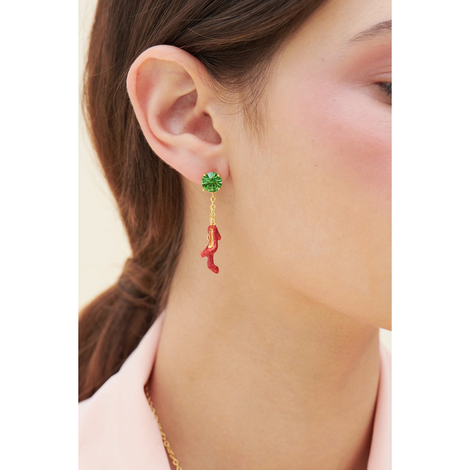 Introducing the one-of-a-kind Theé Toto & Dorothy Shoe Earrings, a designer piece exclusively signed by N2 from Les Nereides. These clip-on earrings are crafted with faceted crystal and two red shoes, making them a perfect addition to your quirky jewelry collection. The Toto & Dorothy collection offers you costume jewelry that is sure to make a statement. Made with gold-plated brass, hand-enamelled characters, and faceted crystal, these earrings are a true work of art. With a length of 14.5cm, width of 1.3cm, depth of 0.5cm, and weight of 2g, these earrings are suitable for non-pierced ears. Add a touch of luxury to your outfit with these stunning earrings from Les Nereides.