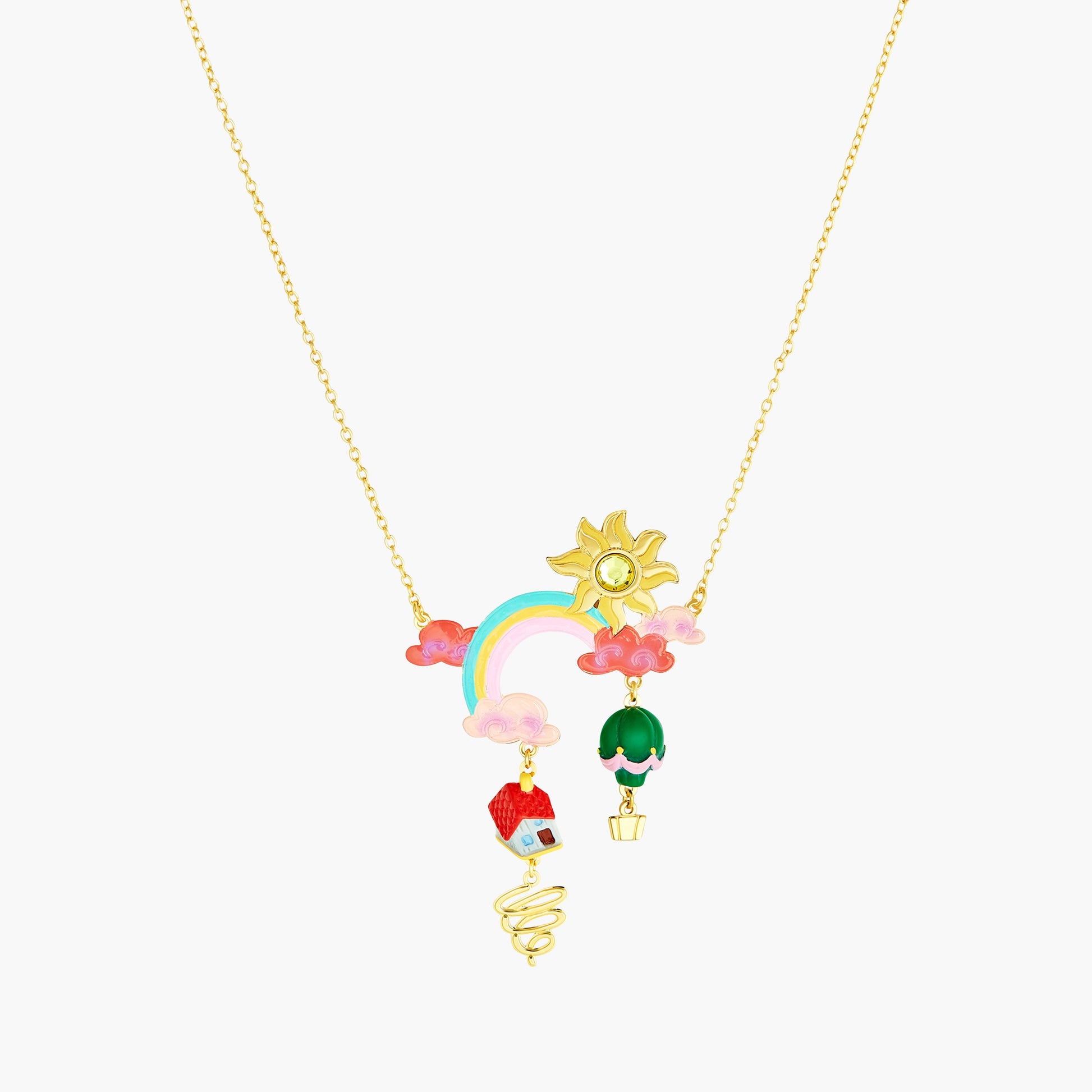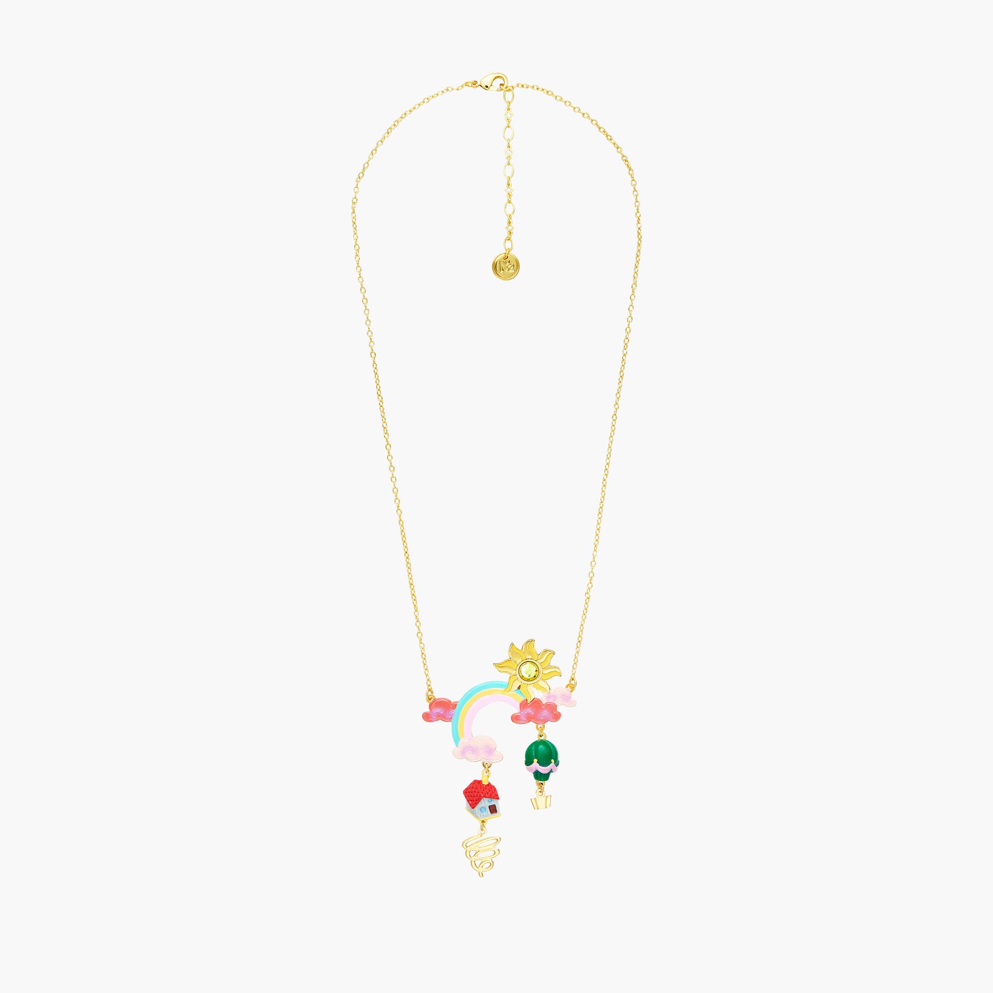 Theé Toto & Dorothy Clouds, Sun, Rainbow, House And Hot Air Balloon Pendant Necklace | anoz3041