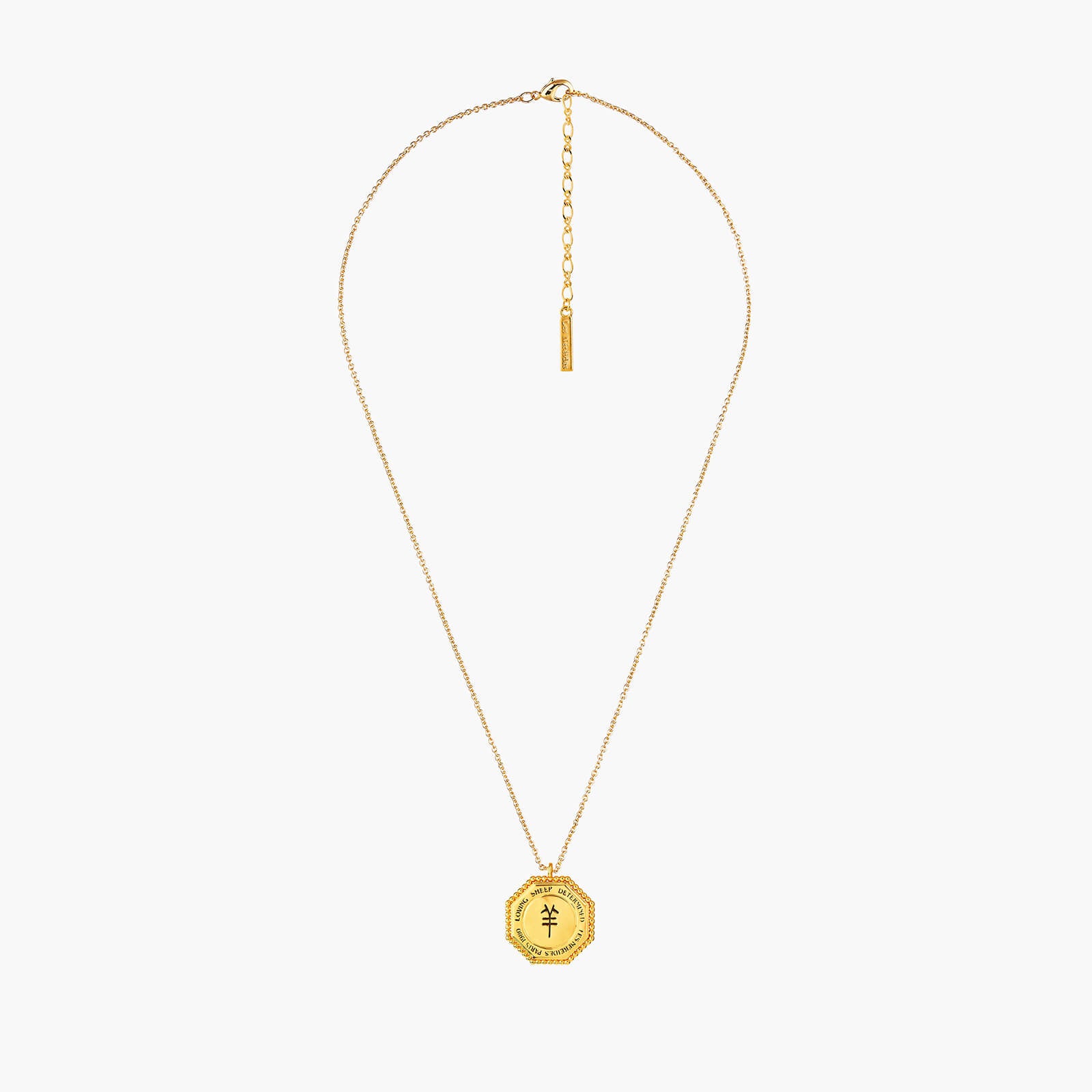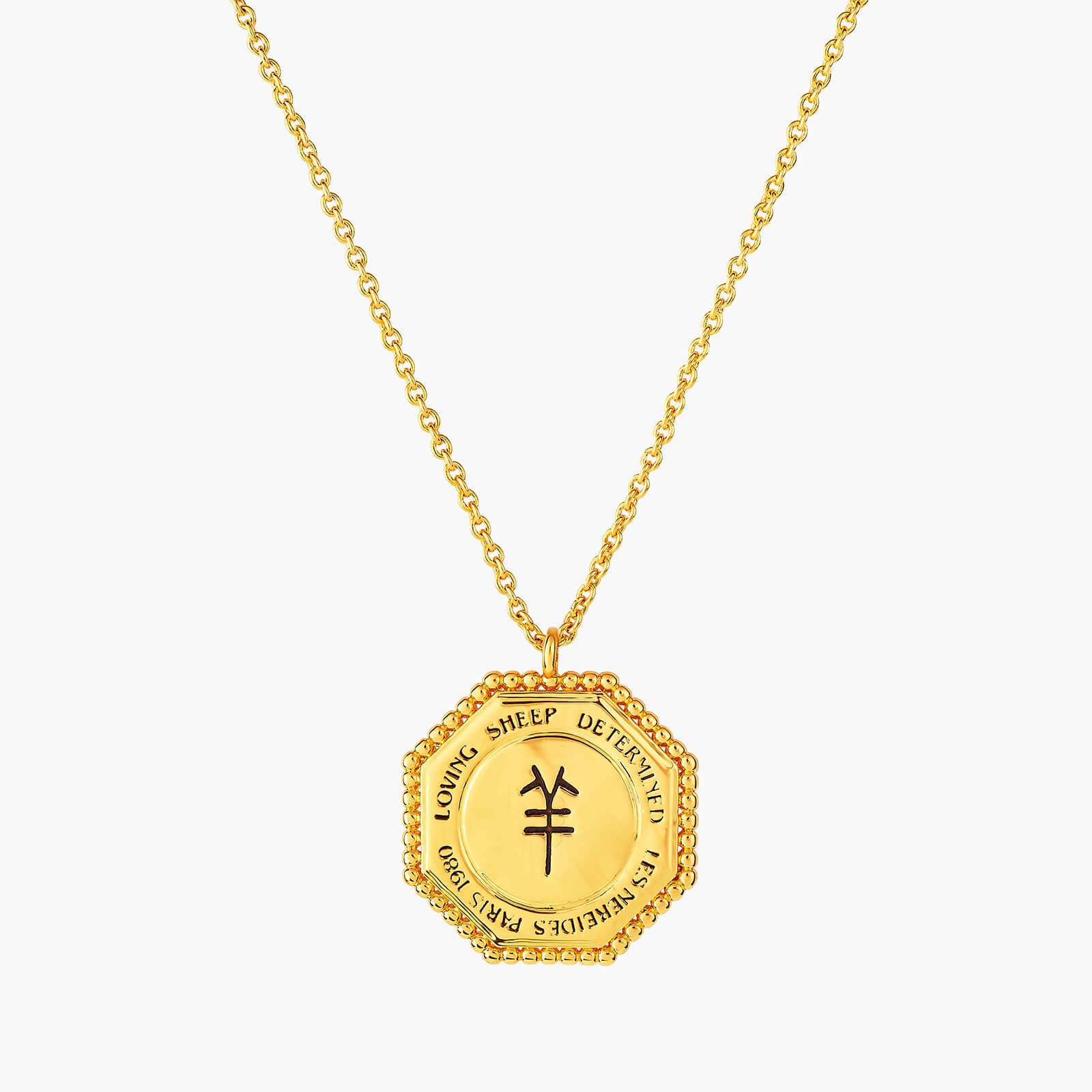 Eighth animal of the Chinese zodiac, it does not lack love or determination, the Goat zodiac sign pendant necklace joins the family of astrological sign pendants. The Animal Zodiac collection is inspired by the Chinese lunar calendar and invites you to associate your year of birth with one of the twelve animals represented on these octagonal medallions. Finely gold plated, this creative piece of jewellery has two character traits inscribed in English on the back of this unisex pendant; "Loving" and "Determined". Find the necklaces of the 12 animals in order: Rat, Ox, Tiger, Rabbit, Dragon, Snake, Horse, Goat, Monkey, Rooster, Dog, Pig.