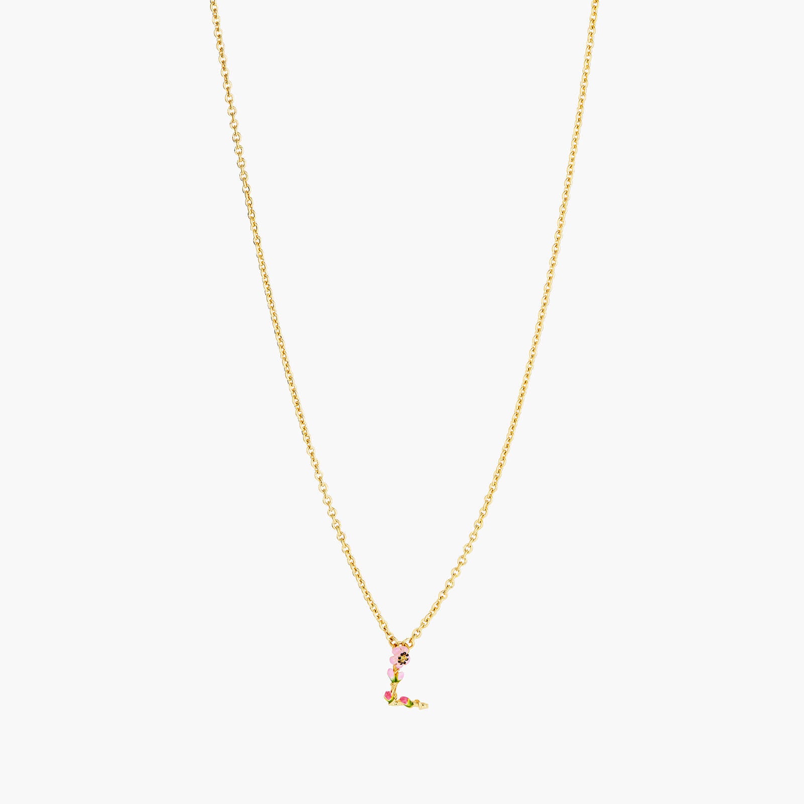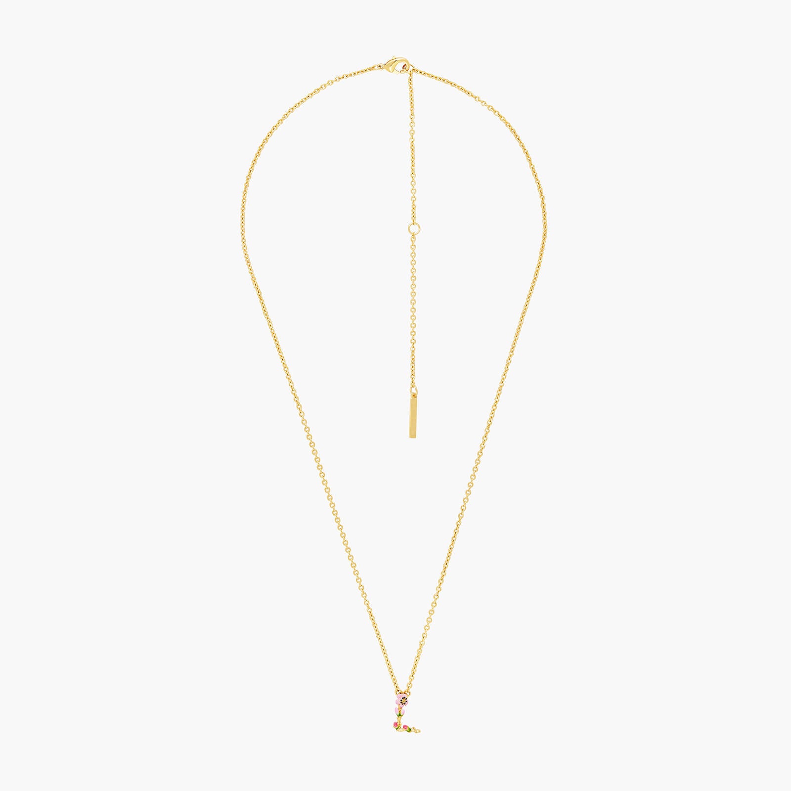 Les Néréides presents a new version of its Alphabet flower necklace with the Extraordinary Alphabet collection. The romantics seal their love with one letter after another. From A to Z, this is the perfect opportunity to give this letter L pendant necklace, finely chiselled, shining with a satin finish. Buds and flowers decorate the letter and are hand enamelled. Pendant Necklace : Gold-plated brass, hand-enamelled flowery letters and cut crystal. Lenght:40cm Extension:10cm Width:1,43cm Depth:0,48cm Weight: 4,6g