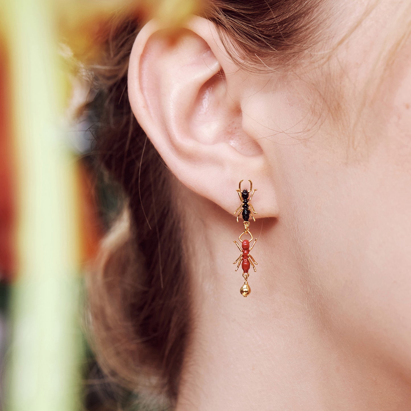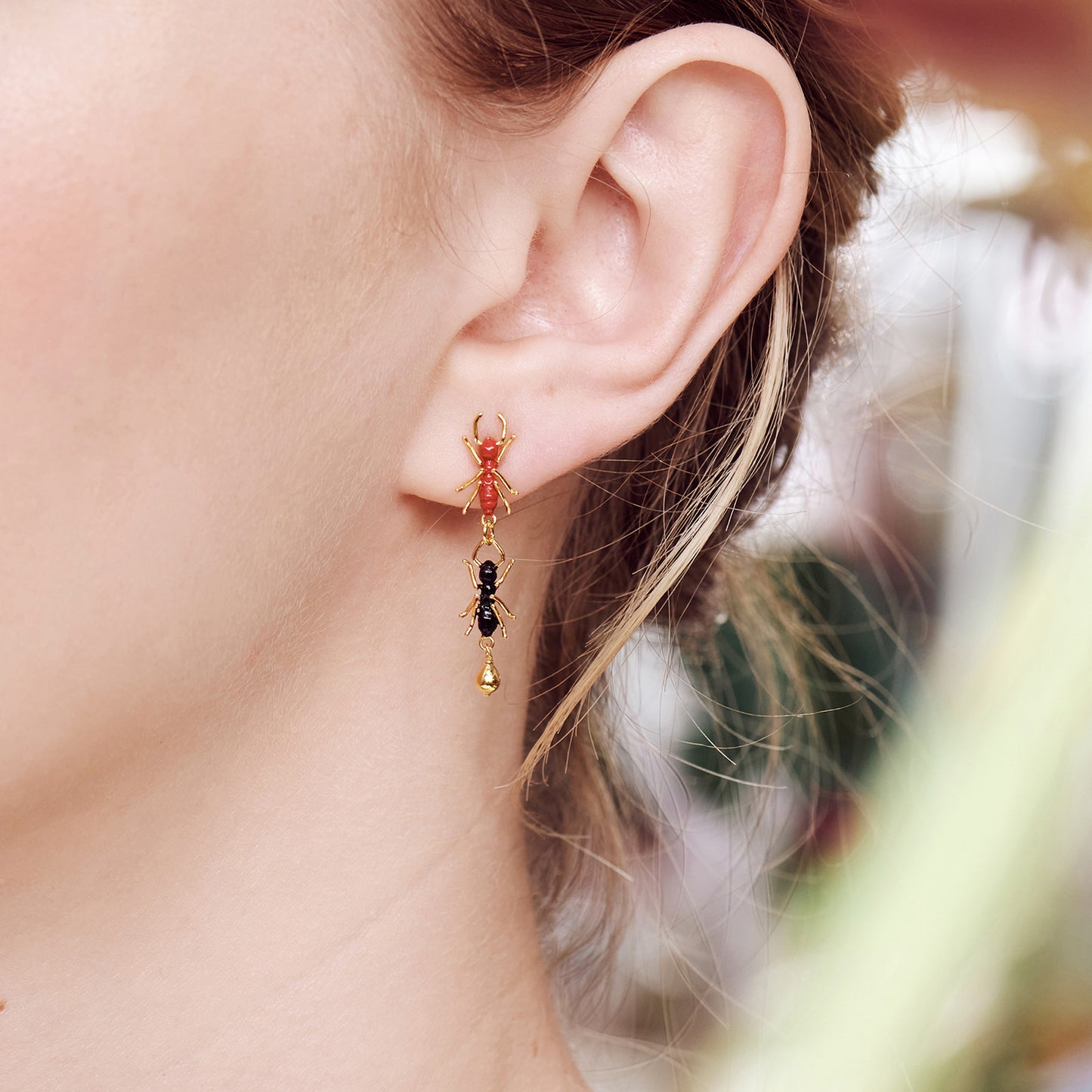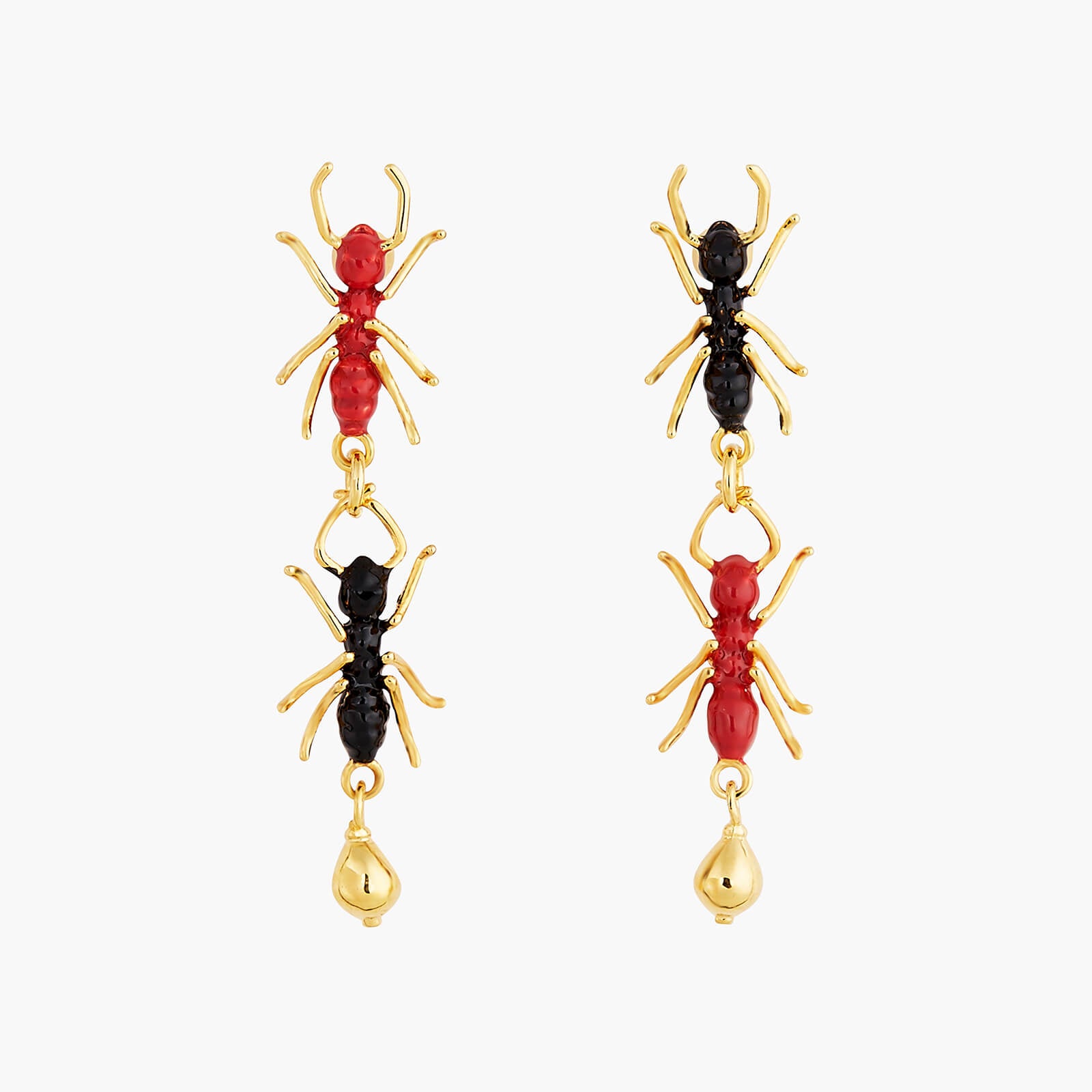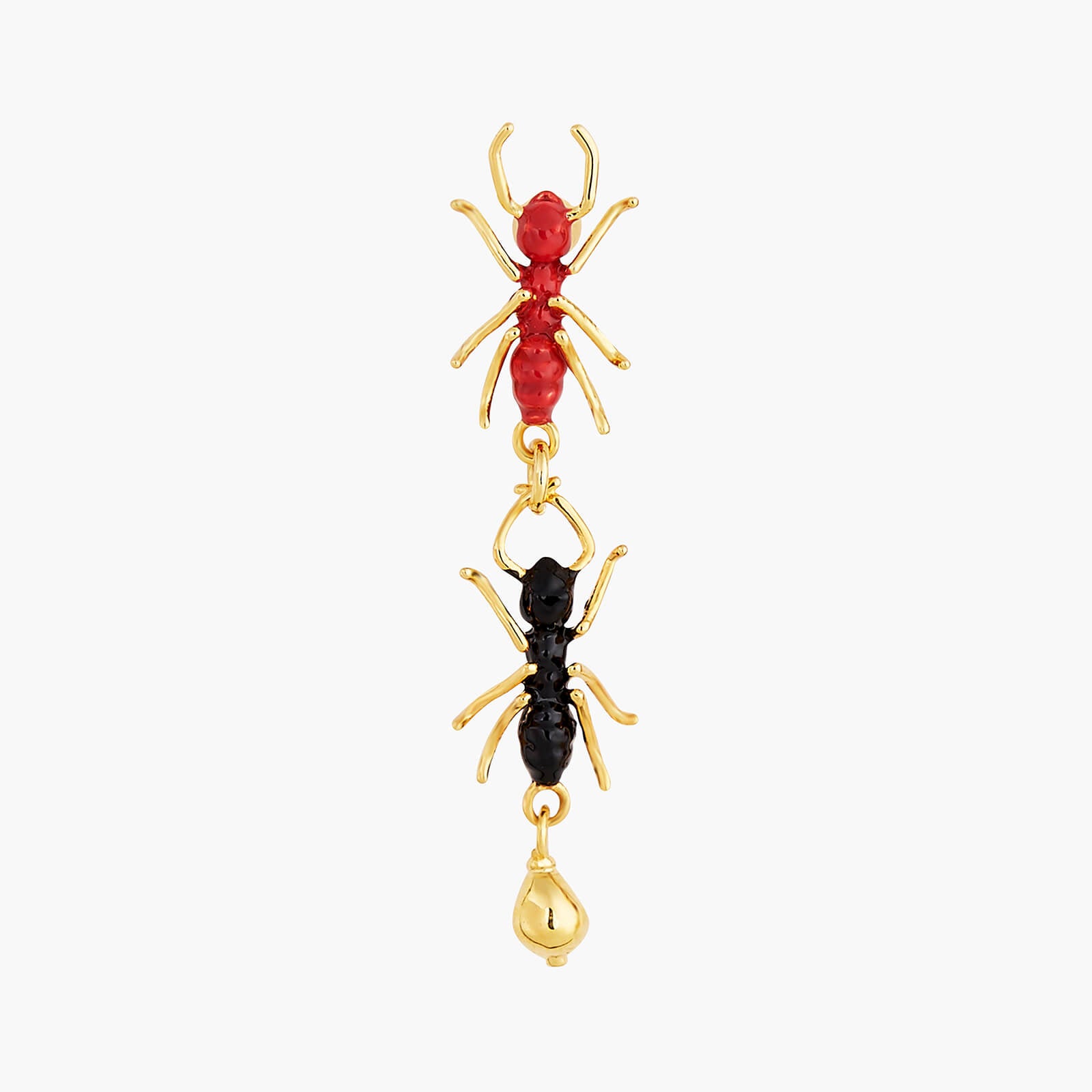 Introducing the latest addition to Les Néréides' exquisite collection - the Ants Post Earrings from the "Loves Animals" collection. This collection was inspired by the devastating fires in Australia and pays tribute to four Australian animals. These earrings feature a flock of ants, proudly carrying the values of La Maison. At Les Néréides, we draw inspiration from nature and strive to preserve it. By purchasing a piece of jewellery from this collection, you not only contribute to the work of shelters selected by our Foundation, but also support the animal cause. These fine gold-plated earrings are hand-enamelled and measure 3.3cm in length, 0.54cm in width, and 1.5cm in depth, weighing 2.12g. Please note that stud, hook, and sleeper earrings cannot be exchanged or returned for hygiene reasons. Les Néréides Loves Animals is our Foundation created in 2015 to support animal welfare. 15% of each sale