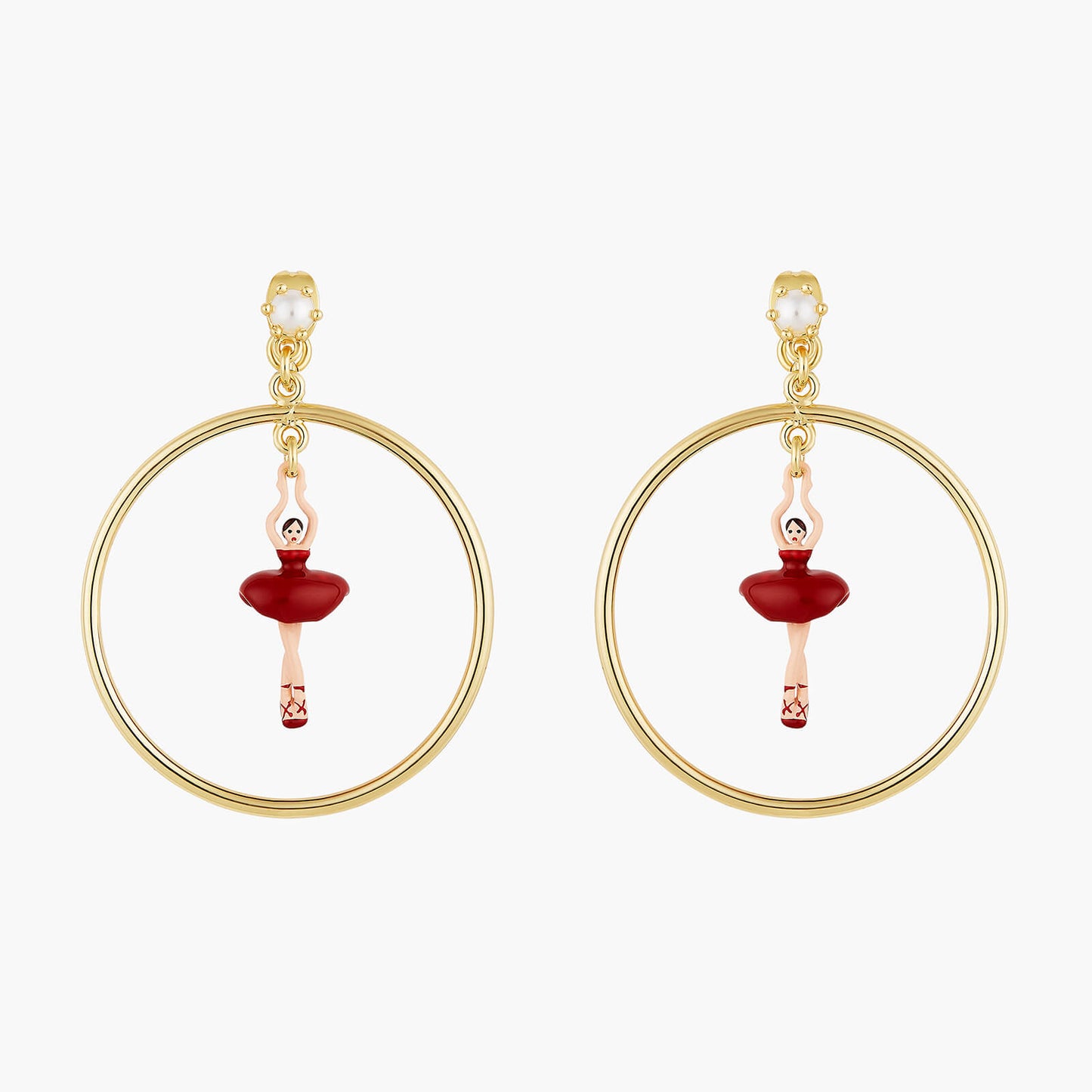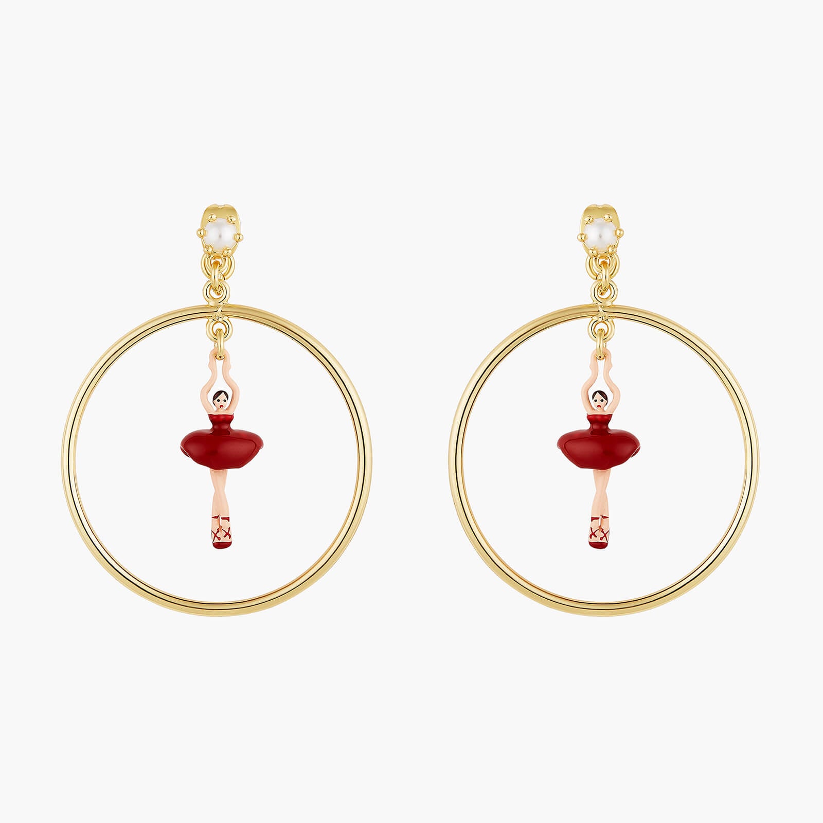 Our mini prima ballerinas are wearing a red tutu this season. Rediscover our iconic collection with this pair of clip on hoop earrings on which the Mini Pas de Deux moves in the centre of a gold ring. To brighten up an urban look, this collection in timeless colours is the one for you. Our ballerinas are available in several colours and finishes, discover them on our costume jewellery website.