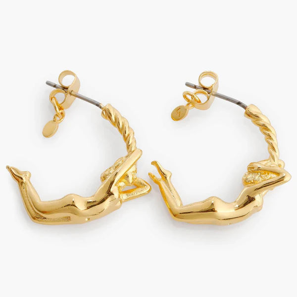 Les Néréides introduces the Venetian Prophecies collection, a new version of its famous star chart inspired by the grandeur of the City of the Doges. This collection depicts the 12 representatives of the zodiac with captivating curves inherited from the Renaissance. Proudly display your Virgo sign with our Virgo Astrological Sign Hoop Earrings, full of character and perfect for those born between August 23rd and September 22nd. Made of gilded brass, these earrings have a length of 2.5cm, width of 2cm, depth of 0.5cm, and weight of 2.8g. Combine them with other jewellery of the same theme to create a chic celestial look. Shop now and add a touch of luxury to your style.