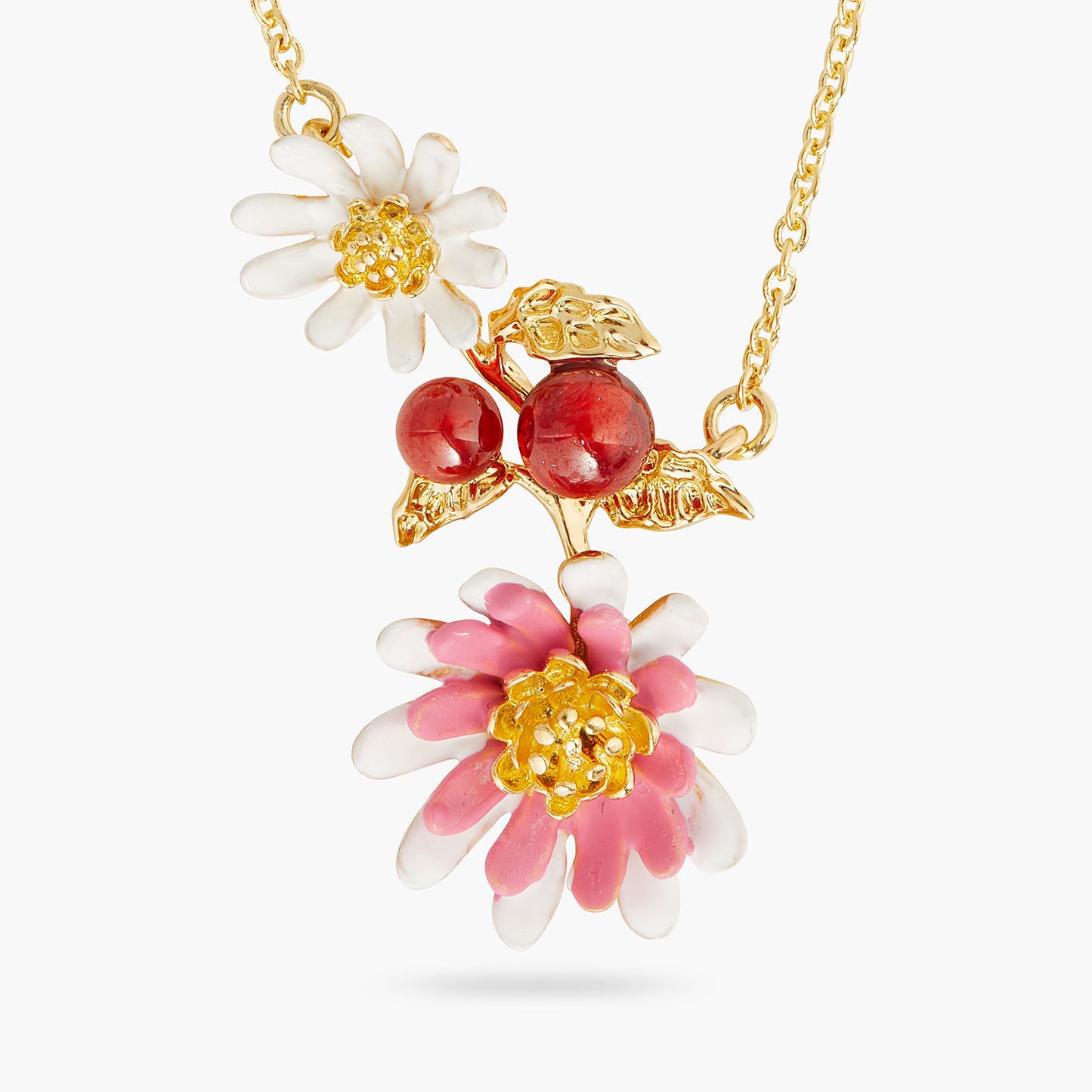 After Monet, Les Néréides is inspired by the works of the painter Matisse for the Hymn to Colours collection. This fine necklace is adorned with a couple of anemones. This floral composition emphasises 3 colours with strong symbolism: passion, affection and innocence. You can pair this necklace with the matching earrings, available as post and sleeper earrings.