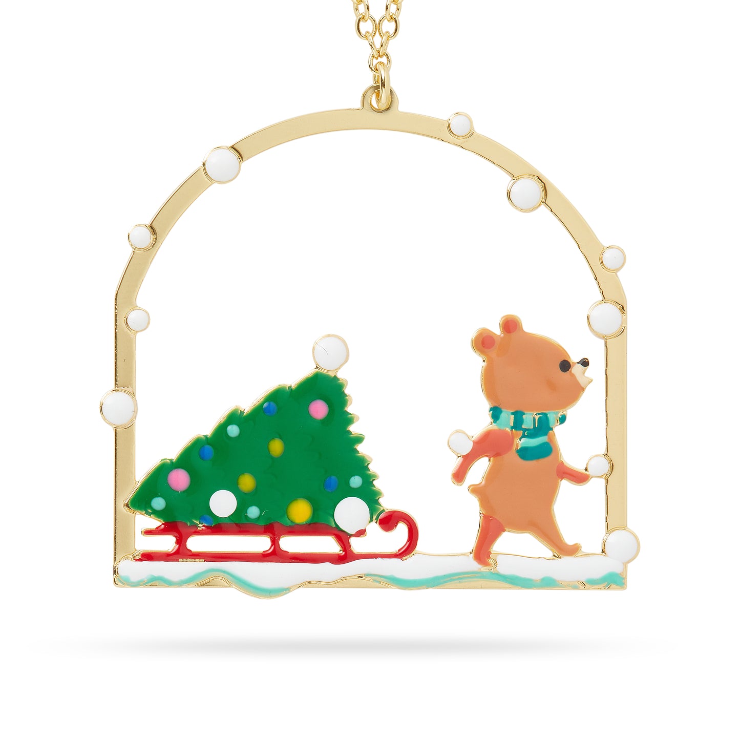 Christmas Tree And Cuddly Bear Pendant Necklace | AQSP3121