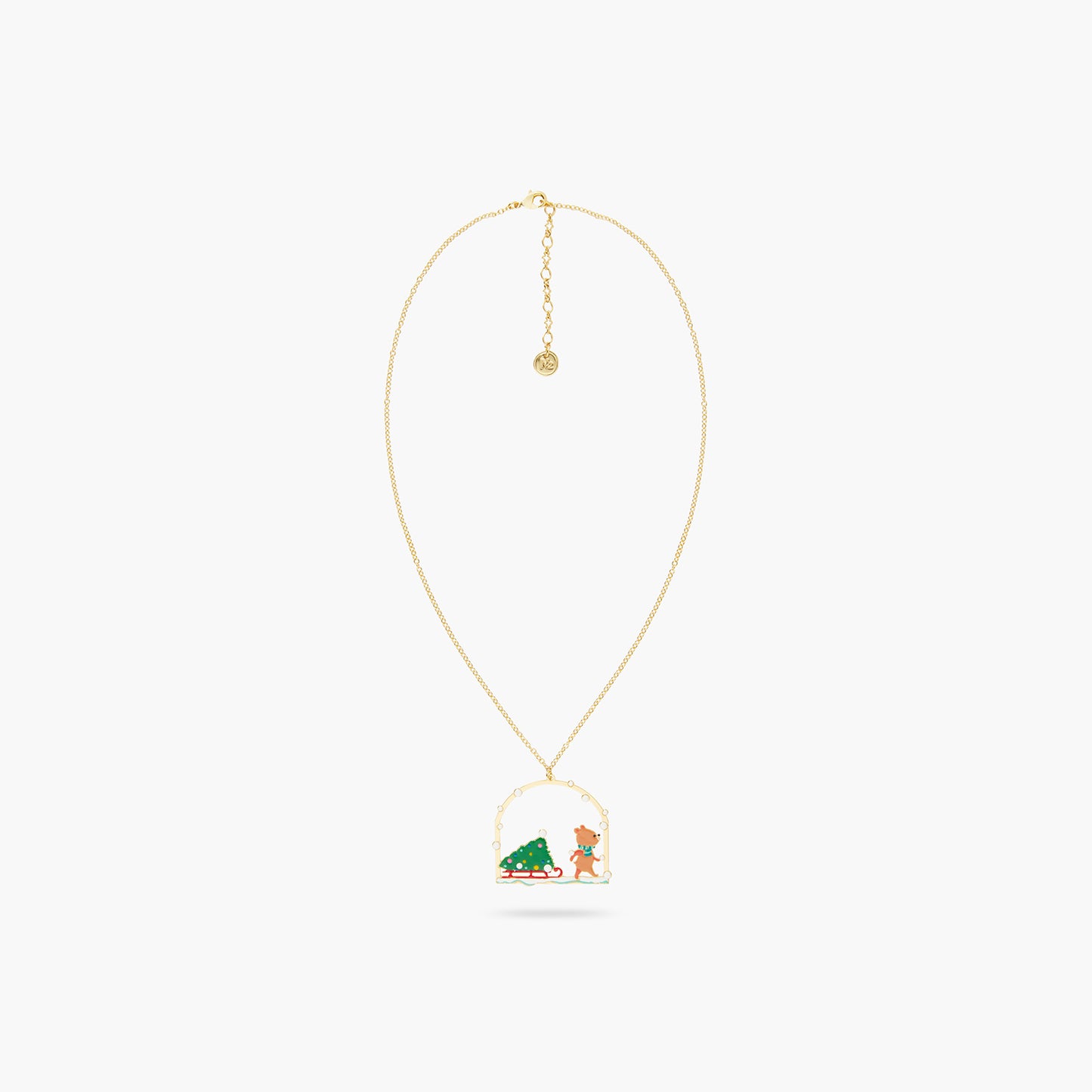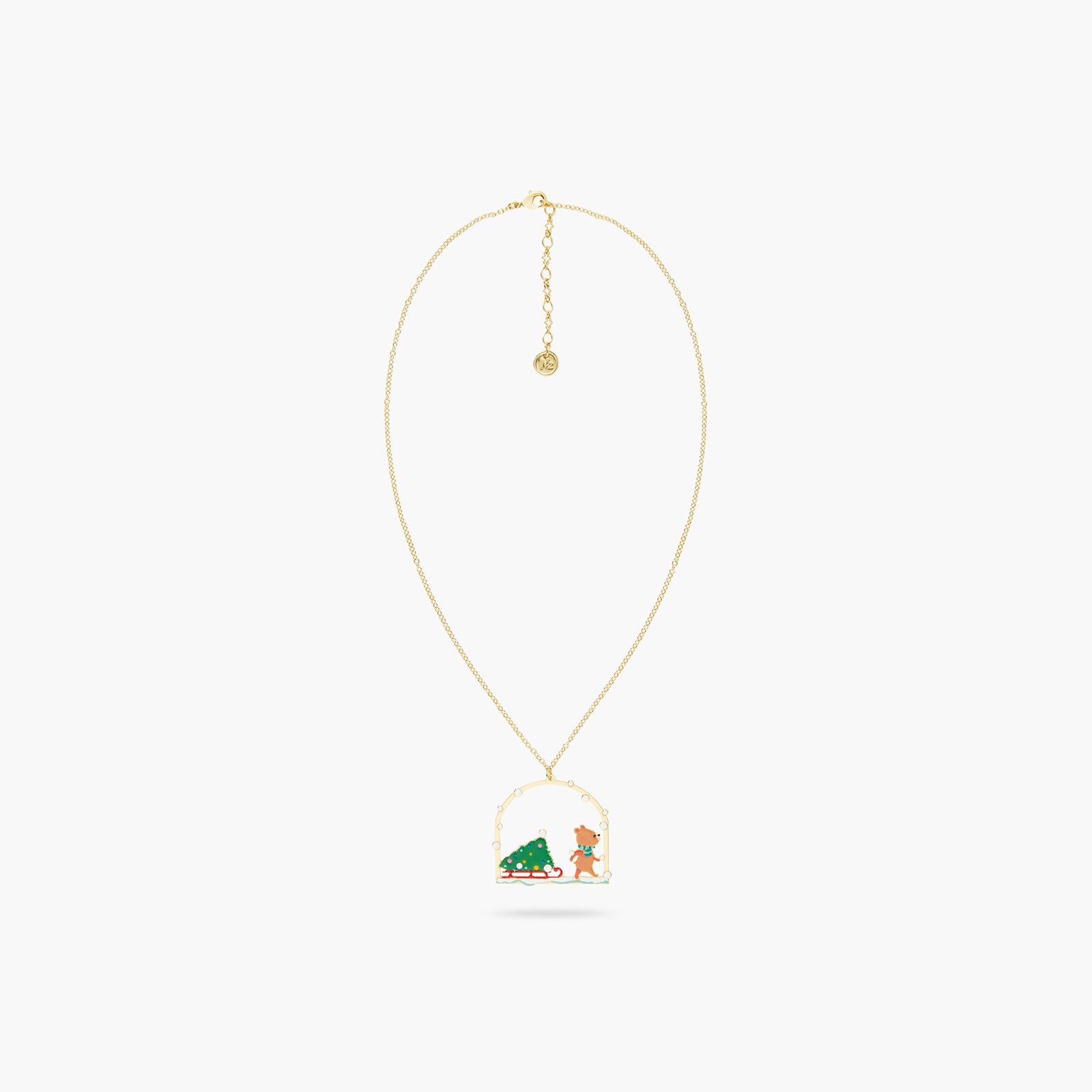 Celebrate the magic of Christmas with Les Néréides' N2 collection. Our Christmas tree and cuddly bear pendant necklace is the perfect accessory to add a touch of festive cheer to your outfit. The cute bear and Christmas tree on a red sledge will bring a smile to your face and spread joy wherever you go. This pendant necklace is part of a range of joyful N2 companions, including earrings, bracelets, necklaces, and delicate rings.