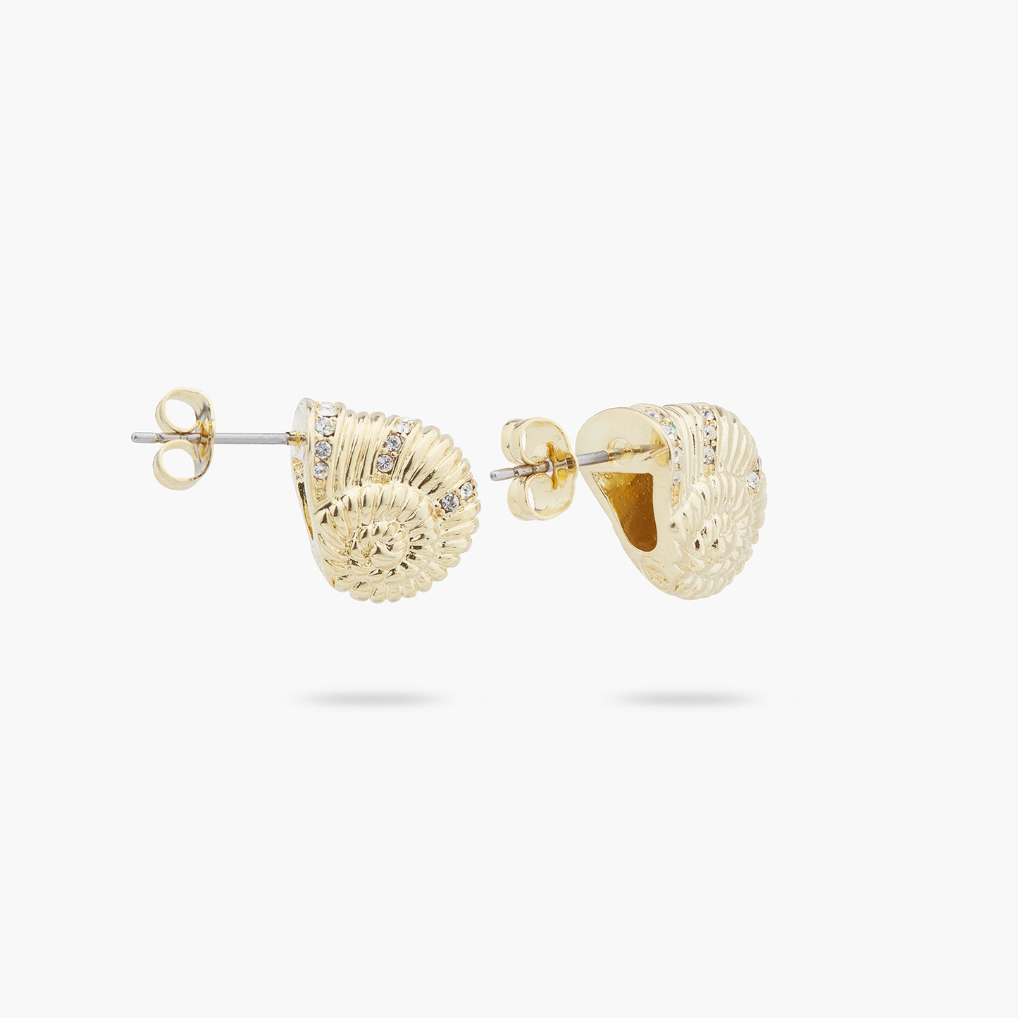 Golden Snail And Faceted Crystal Earrings | ARAM1031