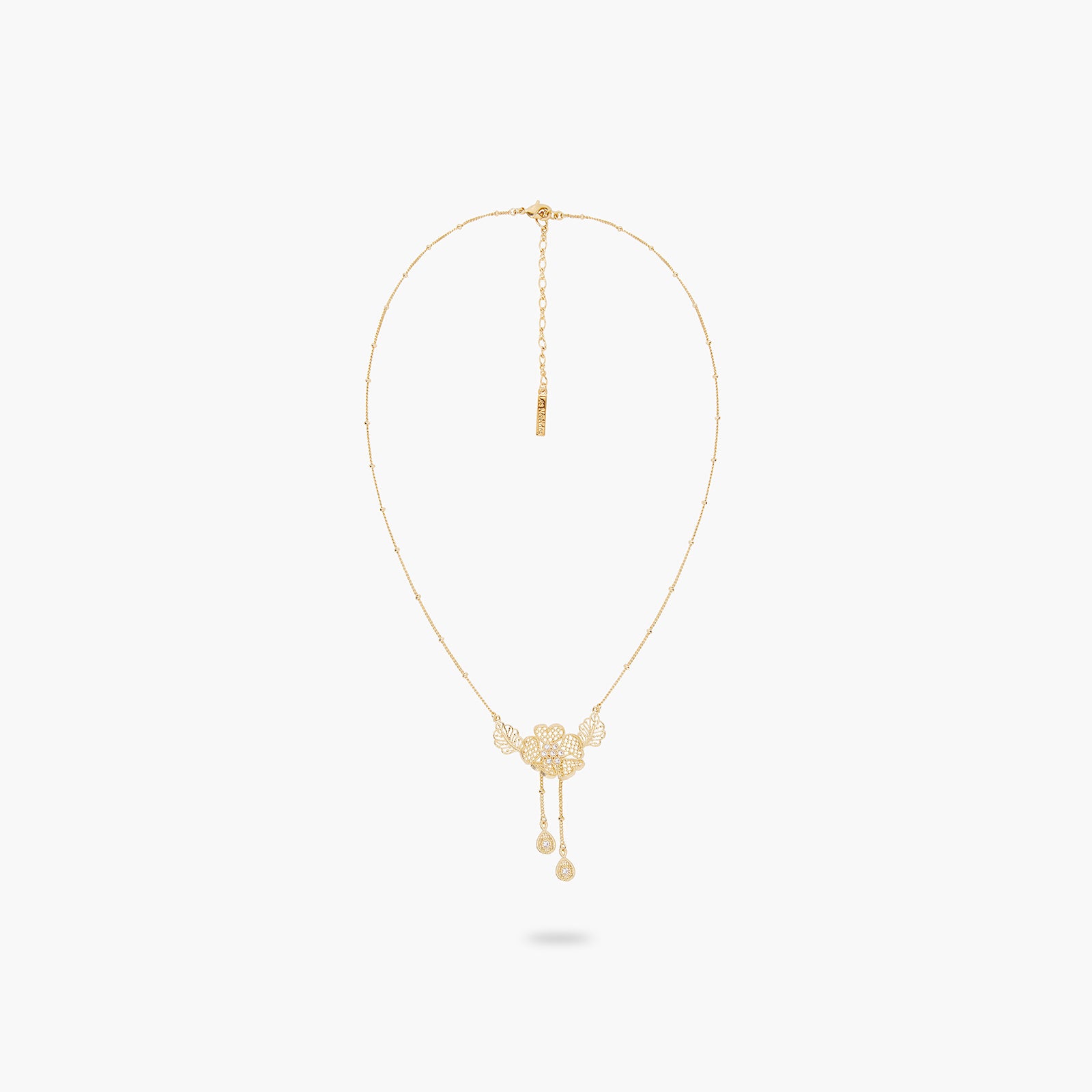 Introducing our exquisite Gold Thread Pendant Fine Necklace, a true masterpiece that will elevate your style to new heights. This necklace features a stunning gold flower at its center, adorned with sparkling details that will add a touch of glamour to any outfit. Our Les Nereides jewels are renowned for their elegance and delicacy, reminiscent of the intricate Alençon lace. Crafted from gilded and hand-enamelled brass, this pendant necklace is a true work of art. With a length of 39.9cm and an extension of 5.2cm, it is the perfect fit for any neck. At just 4.02g, it is lightweight and comfortable to wear all day long. Elevate your jewelry collection with this distinguished piece from Les Nereides.