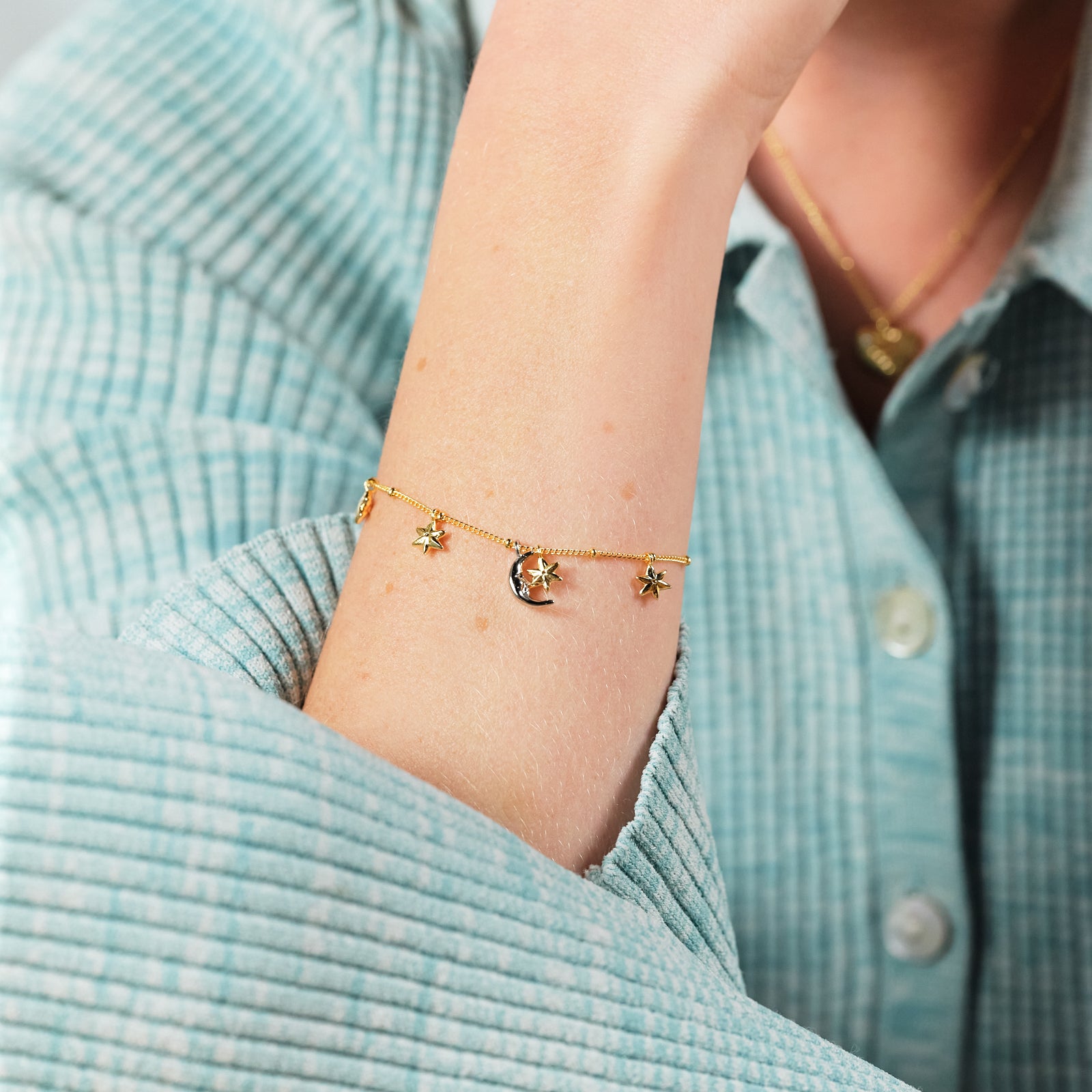 The Fine Stars and Moon Charm Bracelet is a true classic that transcends trends and seasons. Crafted with meticulous attention to detail, this bracelet is designed to stand the test of time without ever losing its appeal.