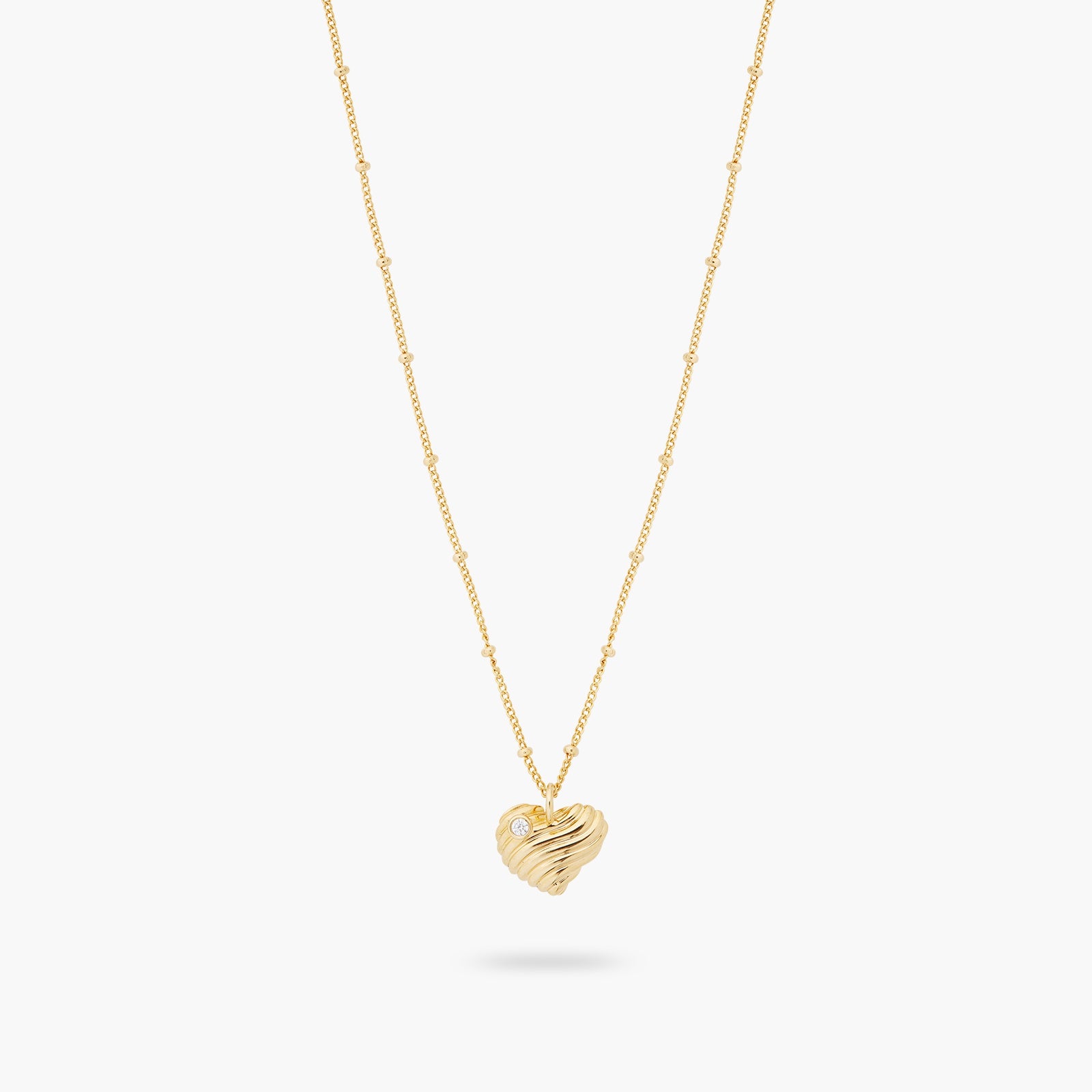 Elevate your style with this stunning ridged heart and cubic zirconia pendant necklace from Les Nereides. Order yours today and experience the luxury and beauty it brings to your life.