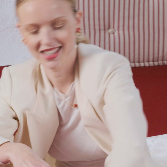 These rose branch and cultured pearl clip-on earrings are the result of a long forgotten rose garden. They showcase an open rose surrounding a cultured pearl as well as a golden branch with green rosebush leaves. Three other cultured pearls are arranged like rosebuds ready to bloom. These costume jewellery earrings for women can be worn with the adjustable ring from the Antica Rosa collection to complete a romantic look.