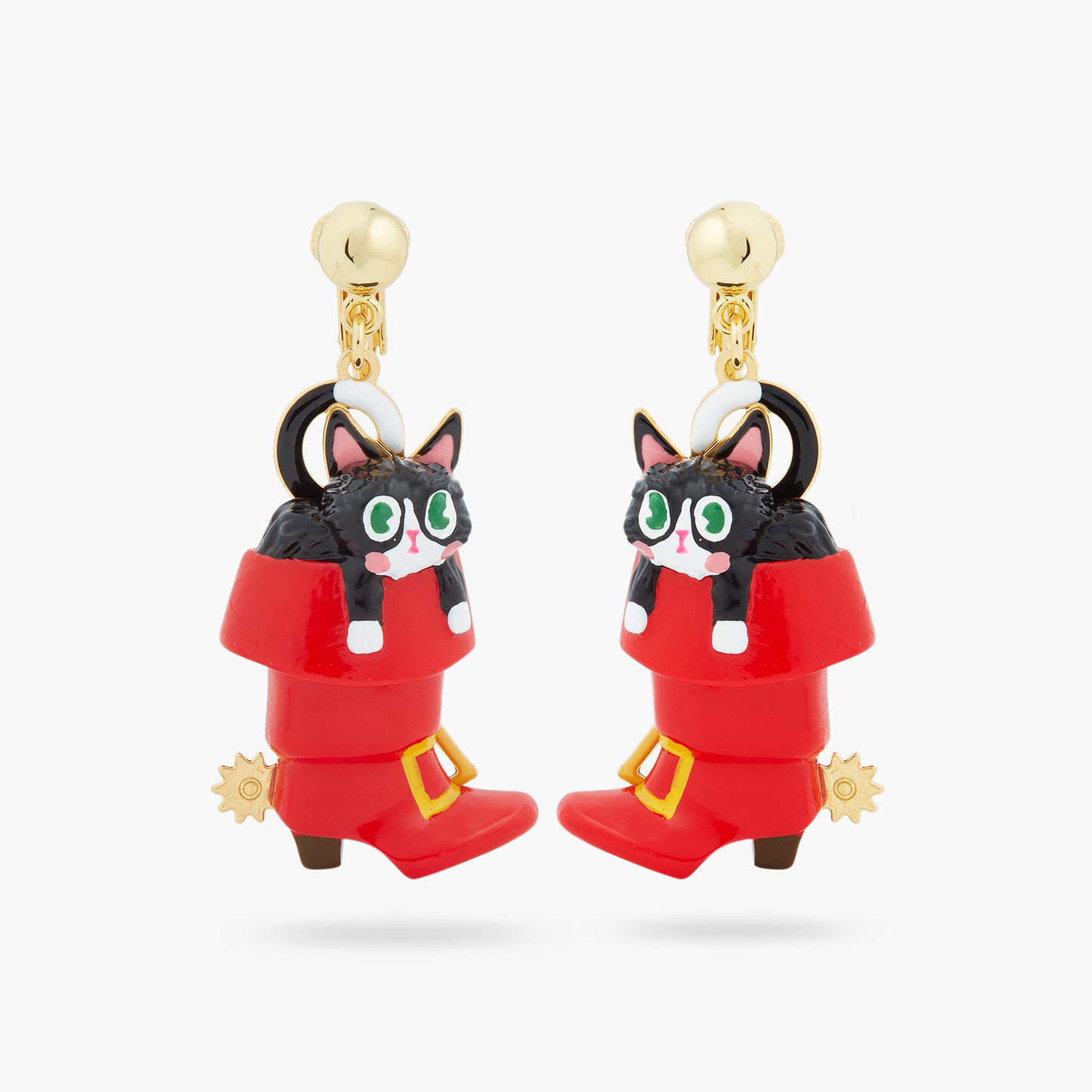 Charming Cat In A Red Boot Earrings | ASCC1031