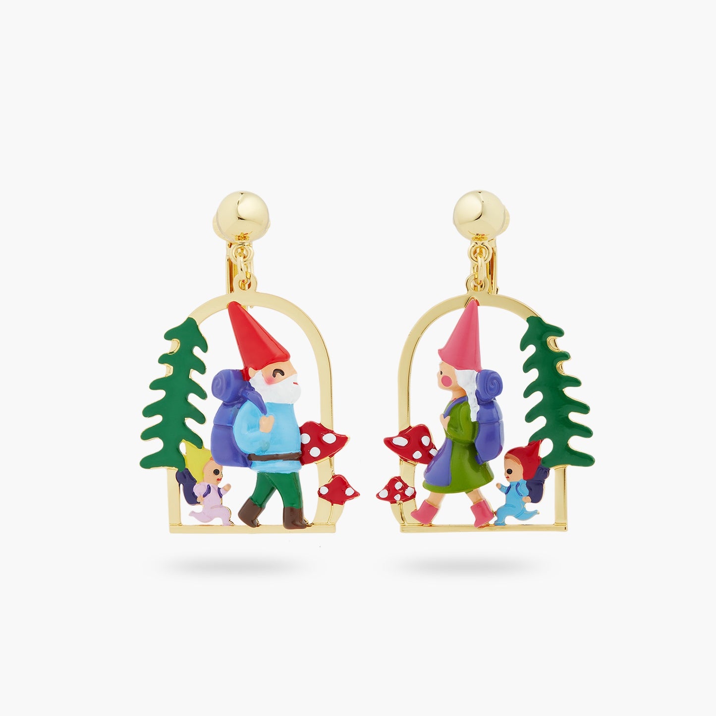 Indulge in the whimsical world of Les Nereides and let the Toadstool Family accompany you on your fashion journey. Order your pair of these enchanting clip-on earrings today and embrace the joy of outdoor adventures and high-fashion elegance.