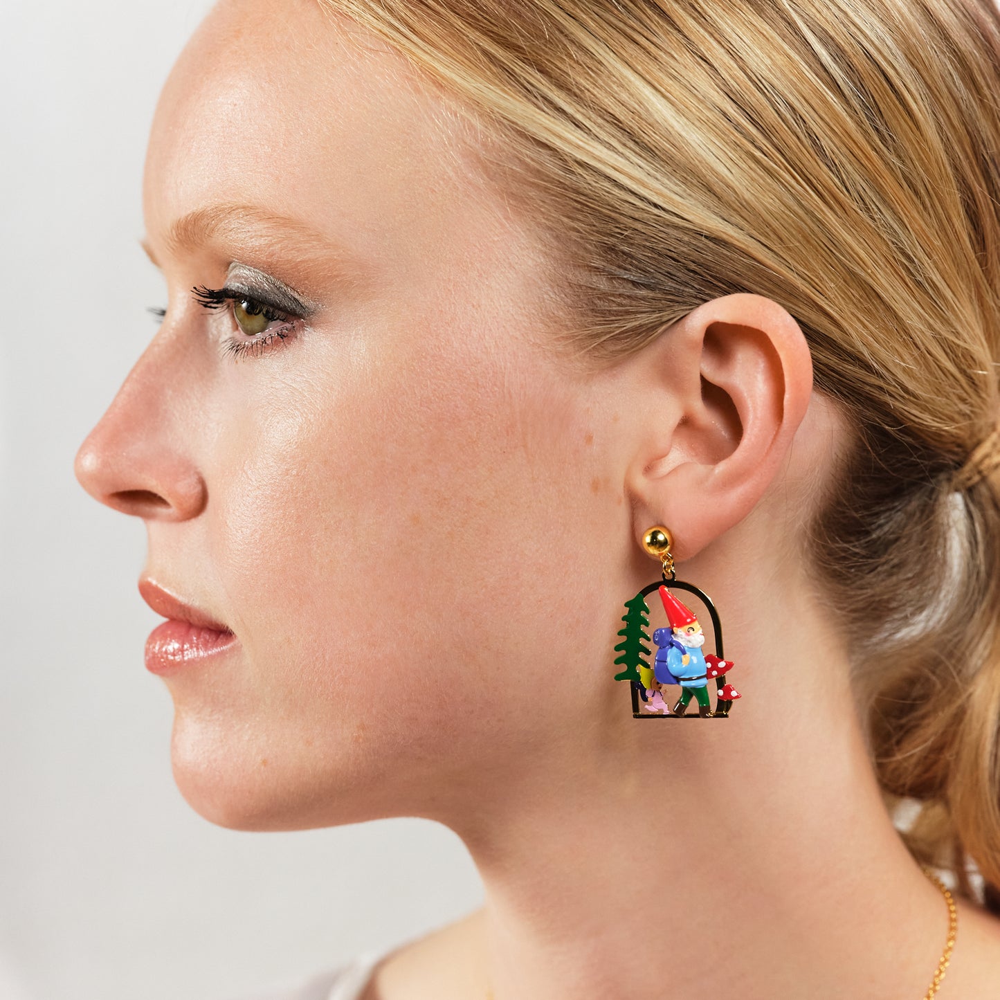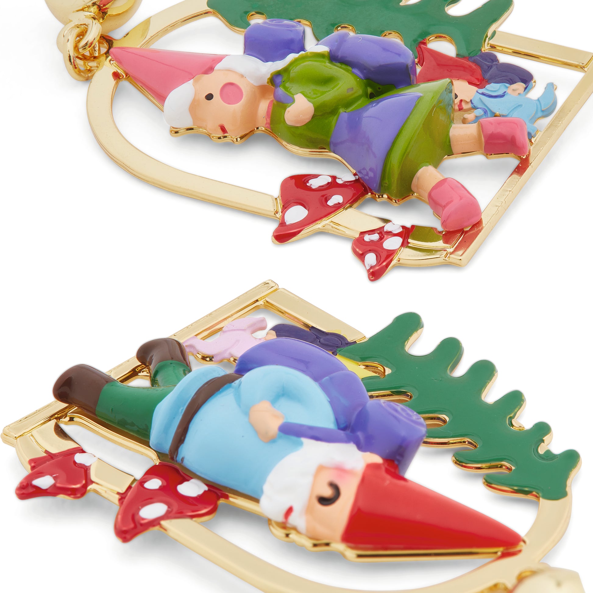 Step into the exuberant world of the Toadstool family, a family of irresistibly charming and fun garden gnomes. These clip-on earrings will transport you to their alpine adventure, offering a refreshing break in the great outdoors.