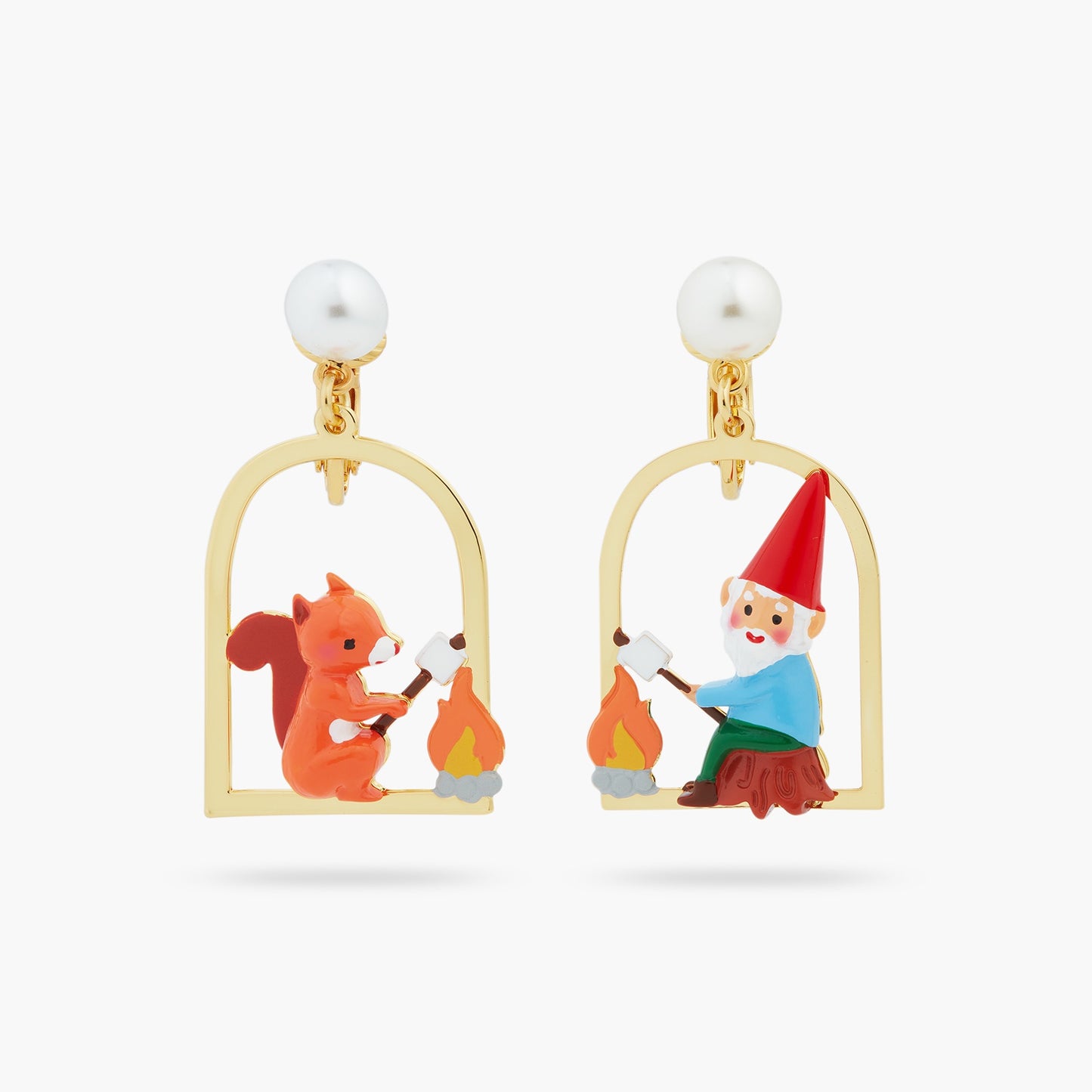 Step into the enchanting world of the Toadstool Family with these trendy clip-on earrings from Les Néréides. Inspired by the famous garden gnome and his squirrel companion, these earrings capture a quiet evening in the woods, where marshmallows are toasted and magic is in the air.