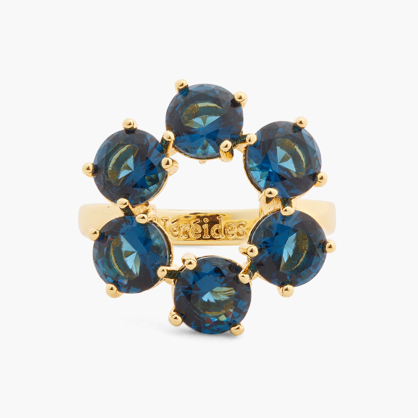 Ocean Blue Diamantine Fine 6 Round Stone Ring | ASLD6191