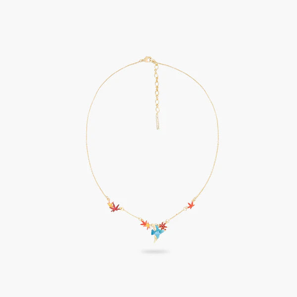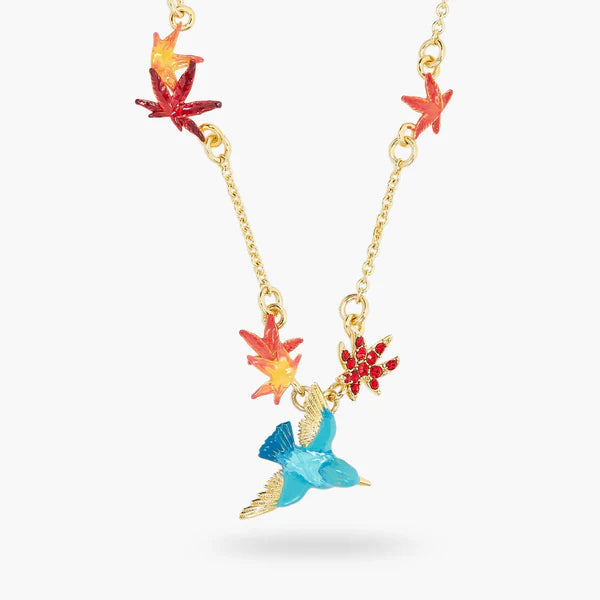 Experience the enchanting beauty of autumn with our exquisite kingfisher and maple leaf statement necklace from the Autumn Feathers collection. Inspired by the poetic allure of Japanese nature, this costume jewellery piece brings a breath of fresh air to your style.