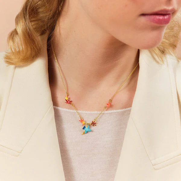 Elevate your style and embrace the radiance of autumn with our kingfisher and maple leaf statement necklace. Shop now and indulge in the luxurious beauty of Les Nereides.
