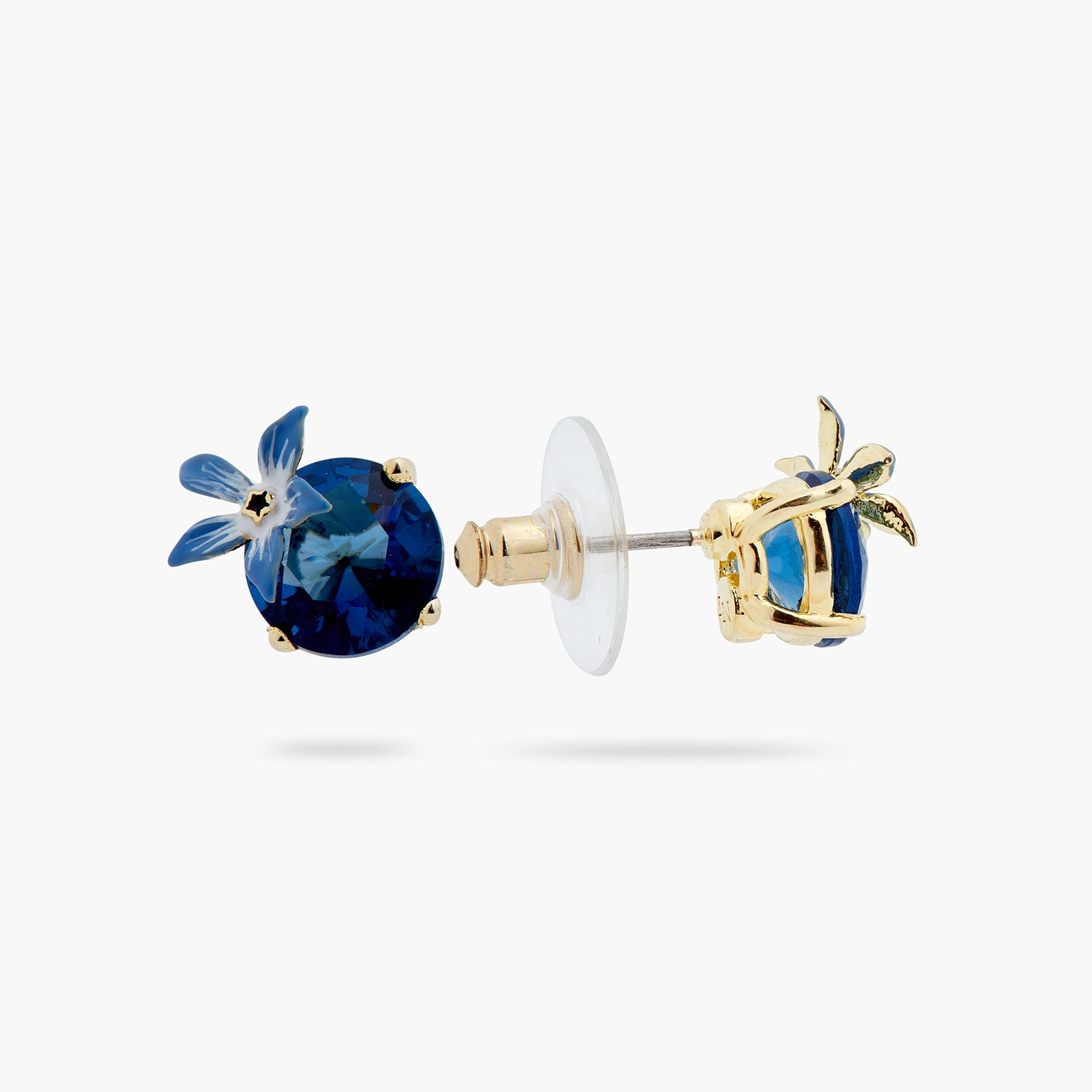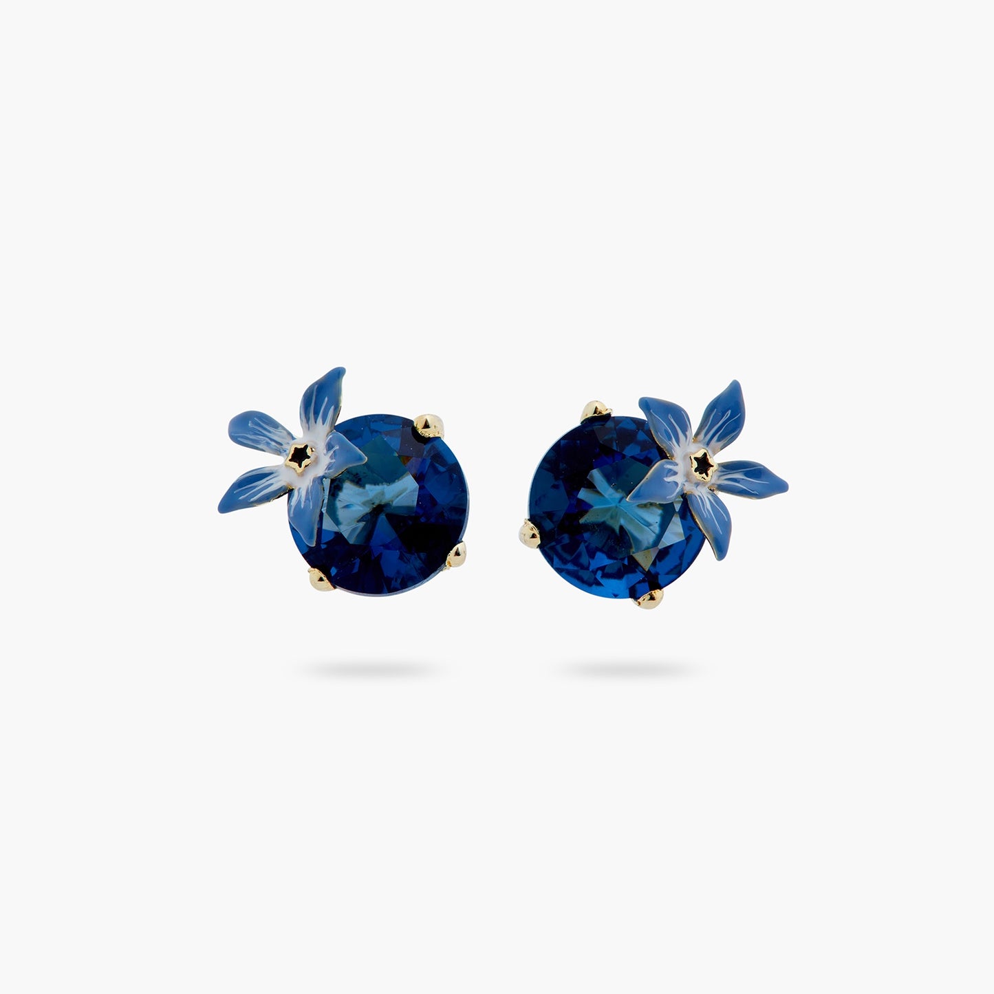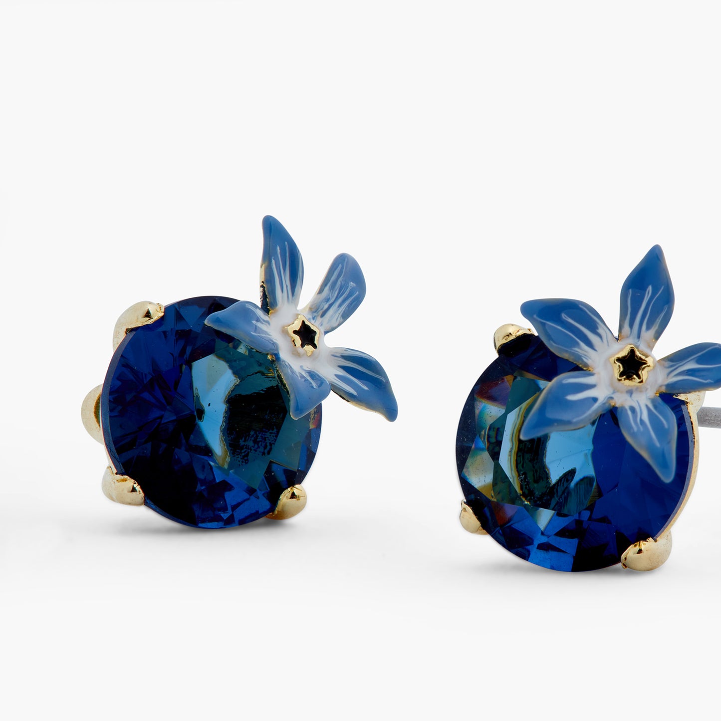 Featuring a stunning midnight-blue stone and hand-enamelled borage flowers, this designer piece is a part of the Wonderful Vegetable Garden collection. Its unique design is bound to captivate you. The enchantingly deep midnight-blue stone softly catches the light, casting a magical glow on your face. The borage flowers provide a subtle elegance. These earrings are versatile, complementing both casual and sophisticated attire. Whether you're a nature enthusiast or in search of a distinctive piece, these earrings will captivate you with their unique allure. Crafted from gold-plated brass, hand-enamelled and faceted crystal.