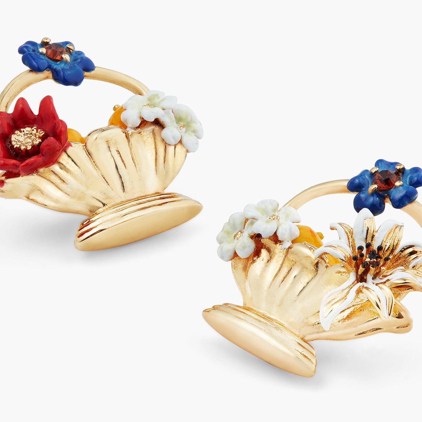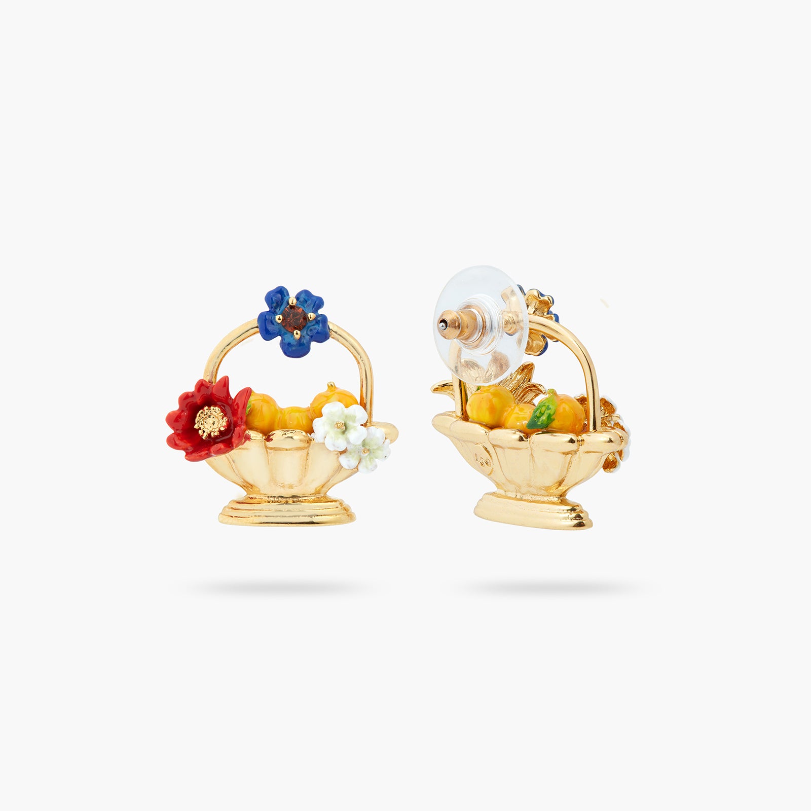 Inspired by the masterpieces of the Flemish Golden Age and still lifes, this pair of earrings is a true work of art. Featuring a basket of fruit and flowers, they capture the essence of a painter's canvas. The basket is delicately gold-plated, while the clementines are meticulously hand-enamelled. These asymmetrical earrings strike a perfect balance between floral elements and autumn fruit.