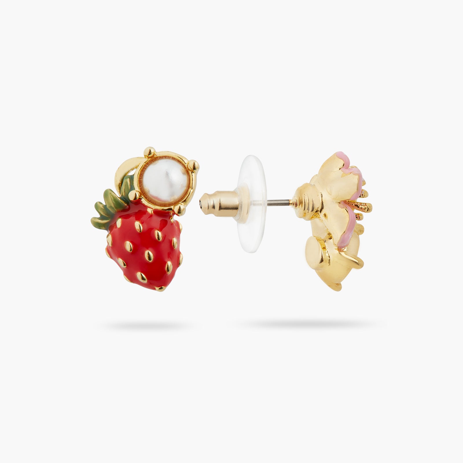 Asymmetrical Wild Strawberry And Pink Flower Earrings | ATBG1061