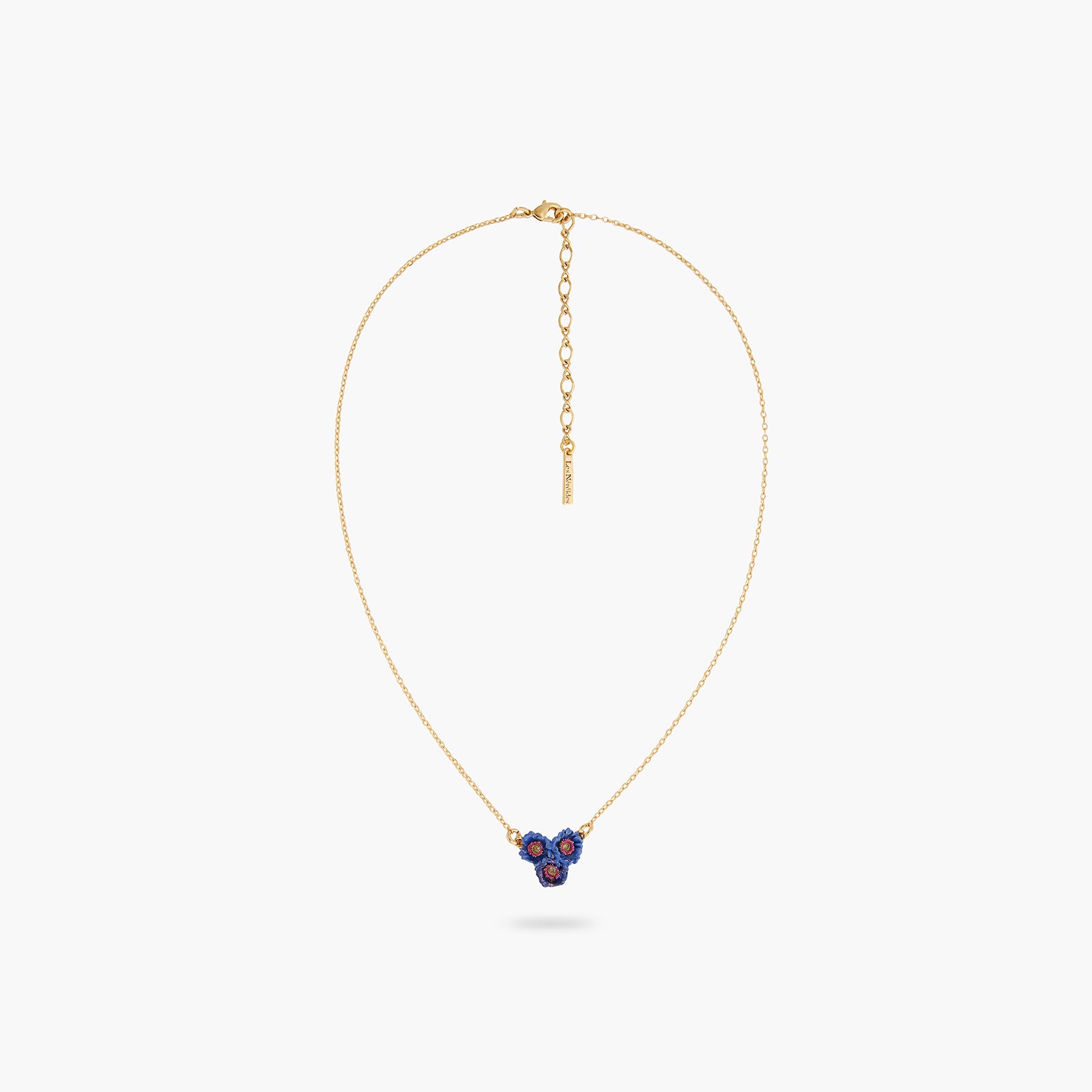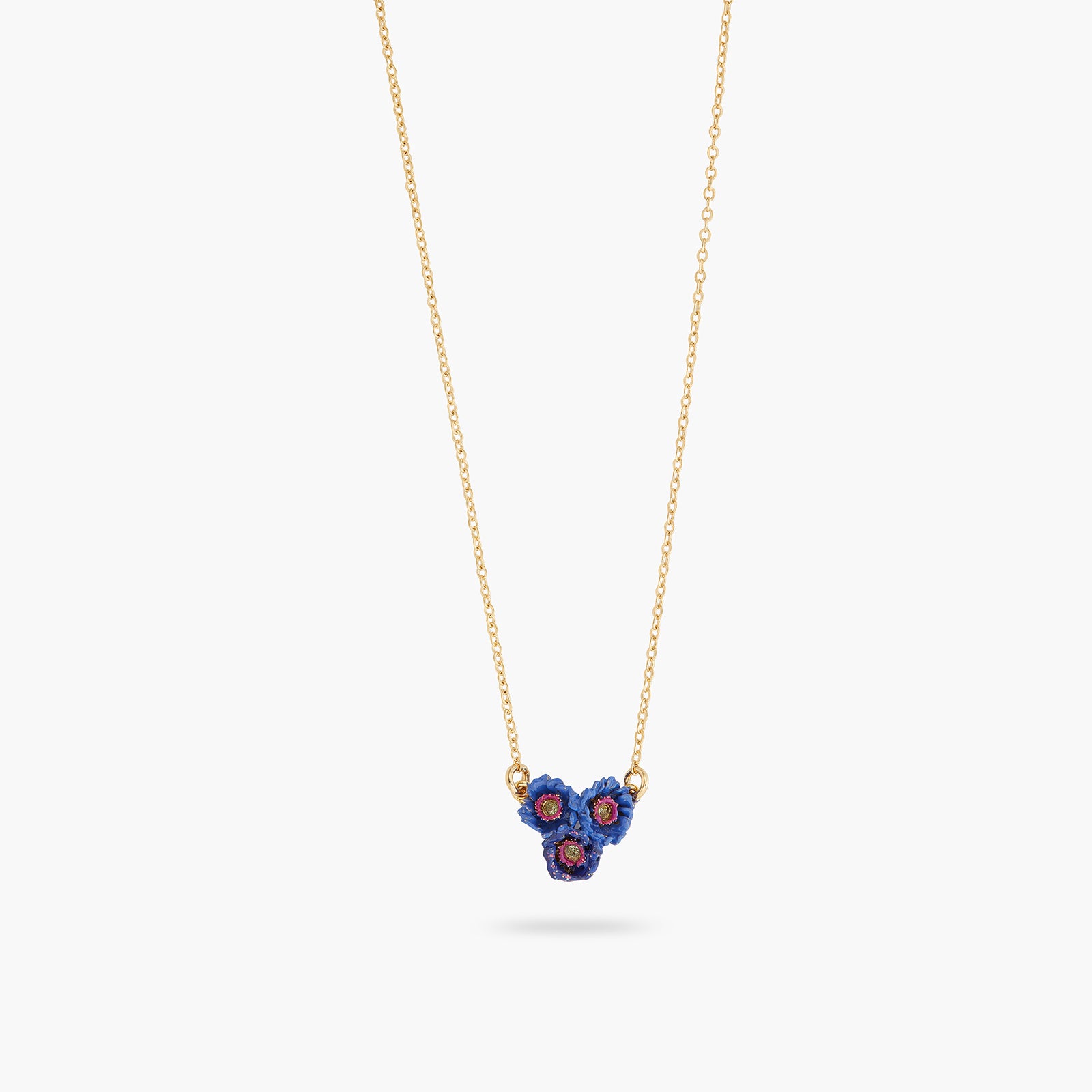 Pendant necklace, 3 hand-enamelled blue anemones, adorned with crystals. We've given free rein to our imagination to create a bouquet of flowers that don't exist in nature, creating increasingly striking sets of jewellery.