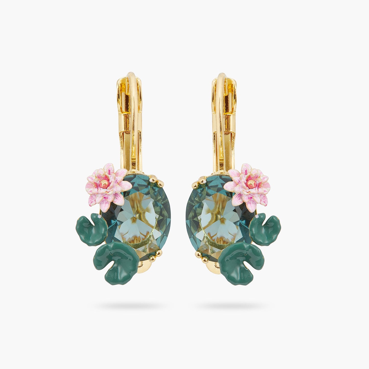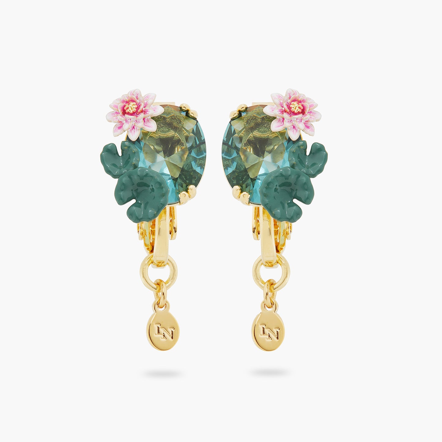 Discover the Water Lilies collection with these refined clip-on earrings, adorned with an exquisite blue crystal stone. A lotus flower and a water lily seem to float delicately on the water symbolised by the stone. The blue adds a touch of brightness to the earrings. This designer jewellery will elegantly complement all your everyday outfits. For a harmonious set, match these costume jewellery earrings with the lotus flower and blue stone pendant necklace.
