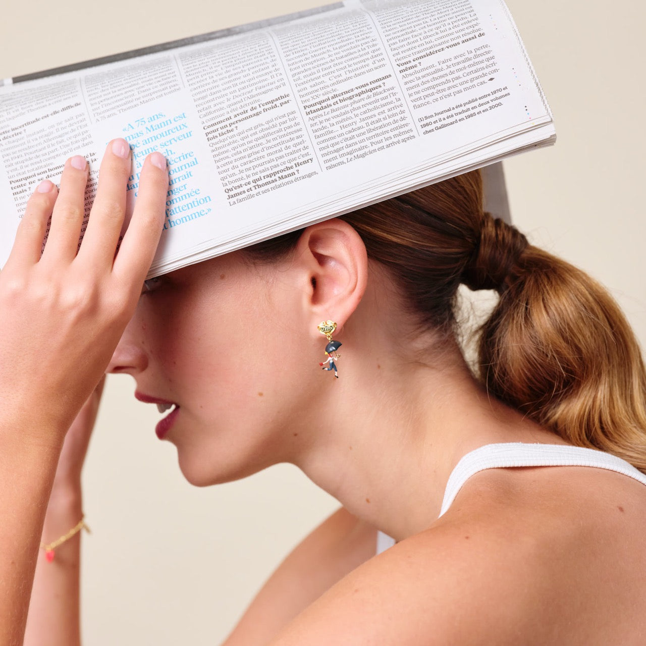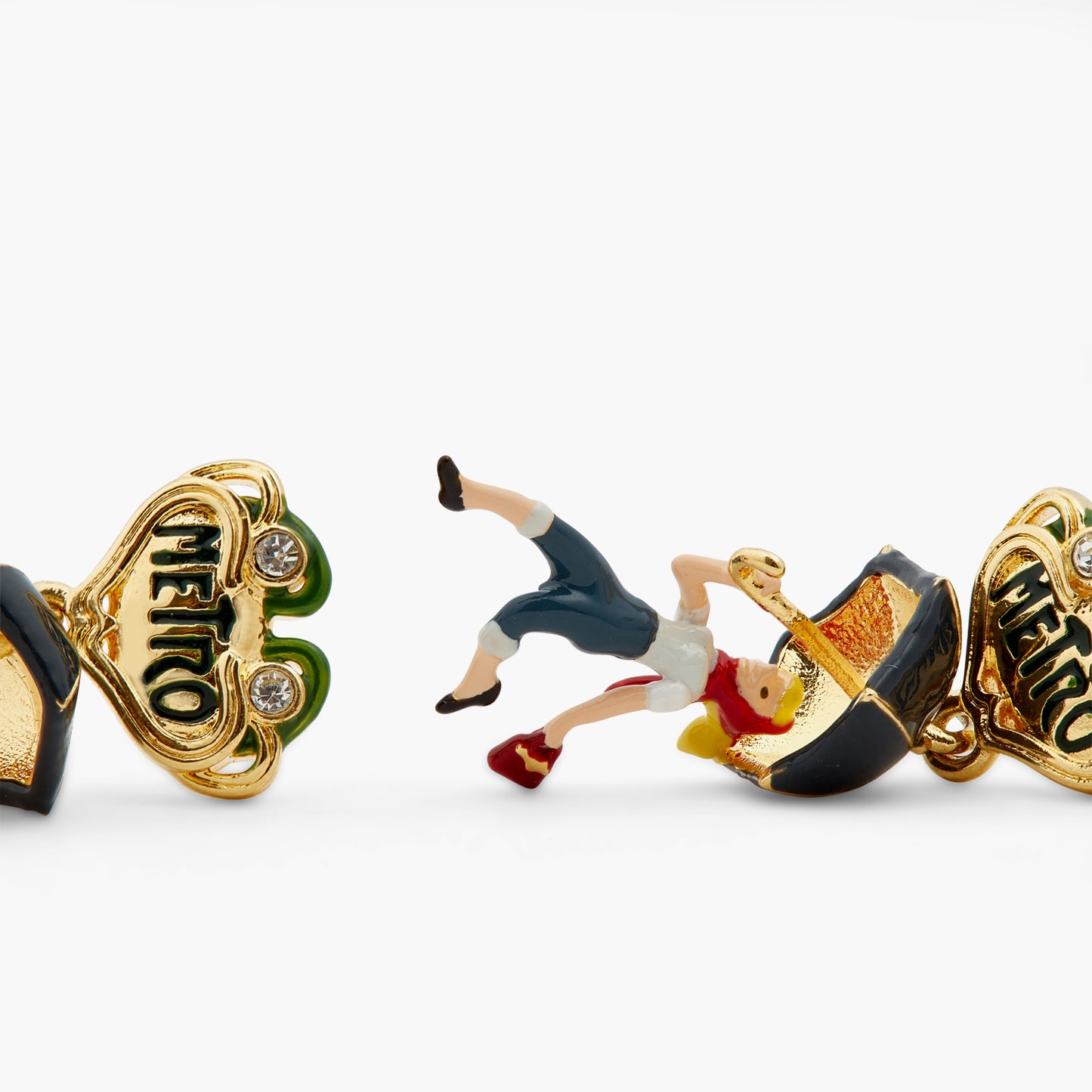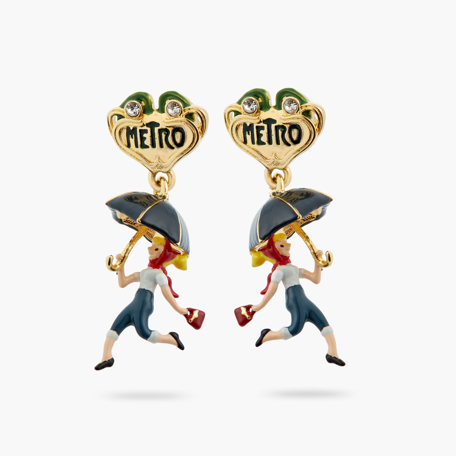 Post earrings, hand-enamelled woman and umbrella, reference to the parisian metro and its Art Nouveau style. Embrace dreamy memories of Paris through images that are typical of Parisian women's lives. A range of jewellery pieces to bring home as souvenirs.