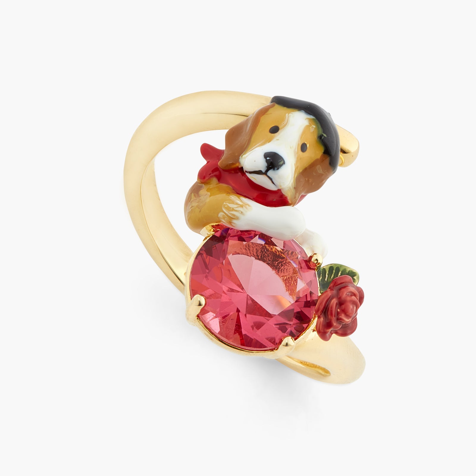 Beagle And Pink Cut Crystal Stone Adjustable Ring | atpa6021