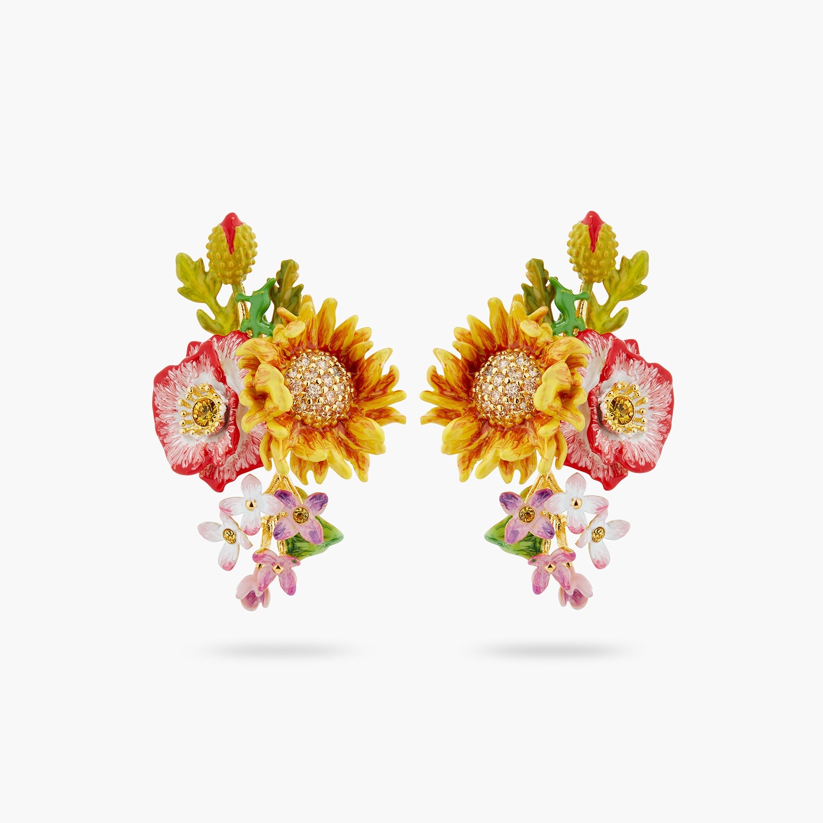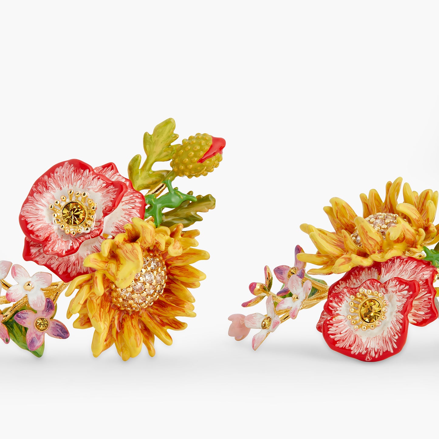 Explore the splendor of the field fields with our exquisite pair of earrings flower clips of the fields. Each detail of these earrings is a celebration of floral diversity. The poppy brings a lively and passionate energy, the sunflower radiates warmth and optimism, while the lilac flowers evoke the softness of spring. The subtle details of the petals and the vibrant colors highlight the freshness of the fields in flowers. Whether for an outdoor day, a special evening or simply to add a floral note to your daily outfit, these earrings are the perfect choice.