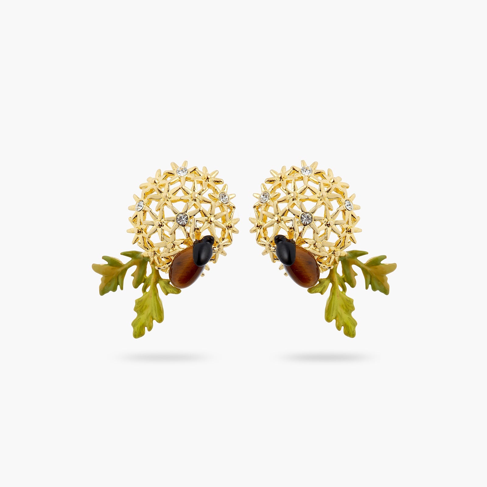 Golden Flower Bouquet And Scarab Beetle Earrings | ATPO1101