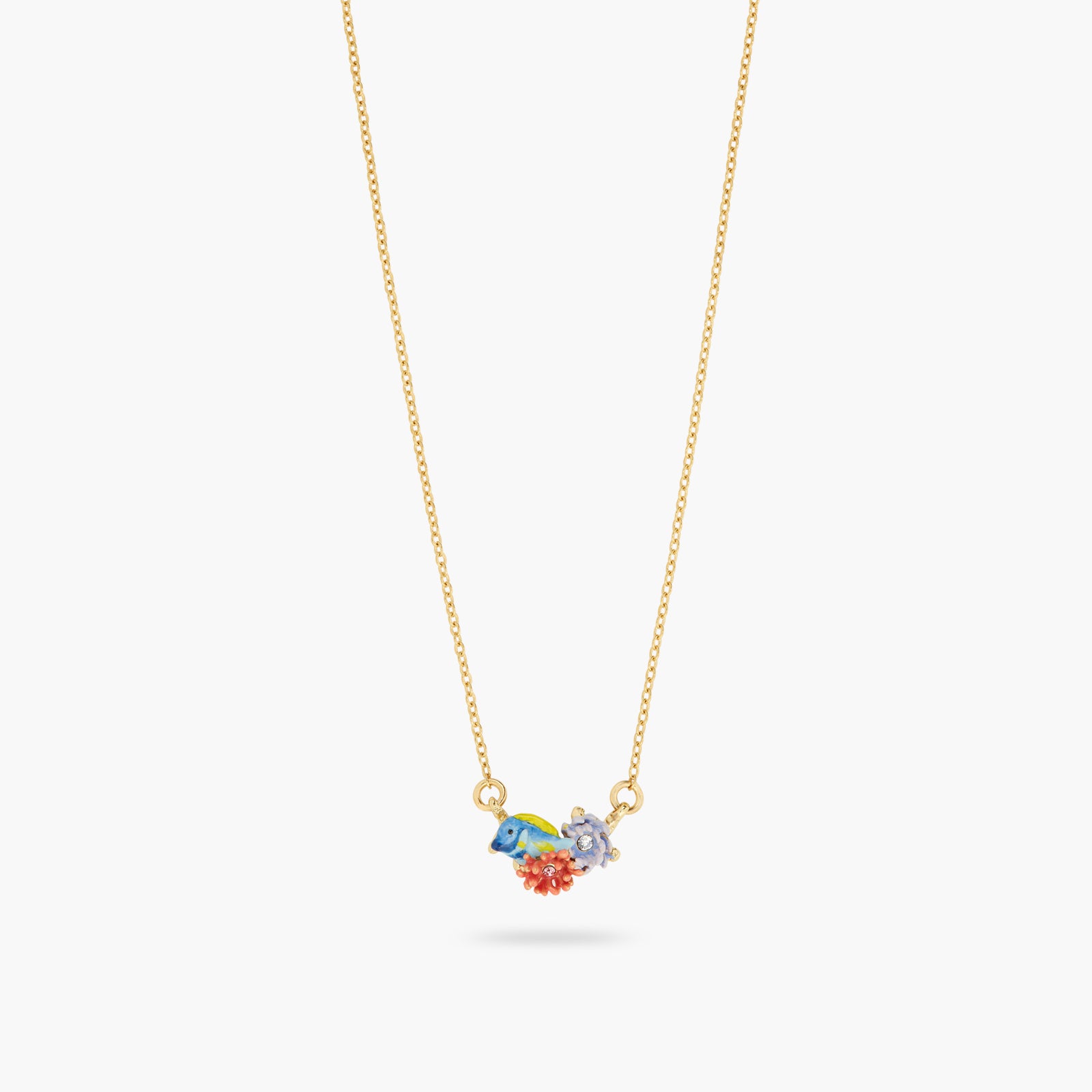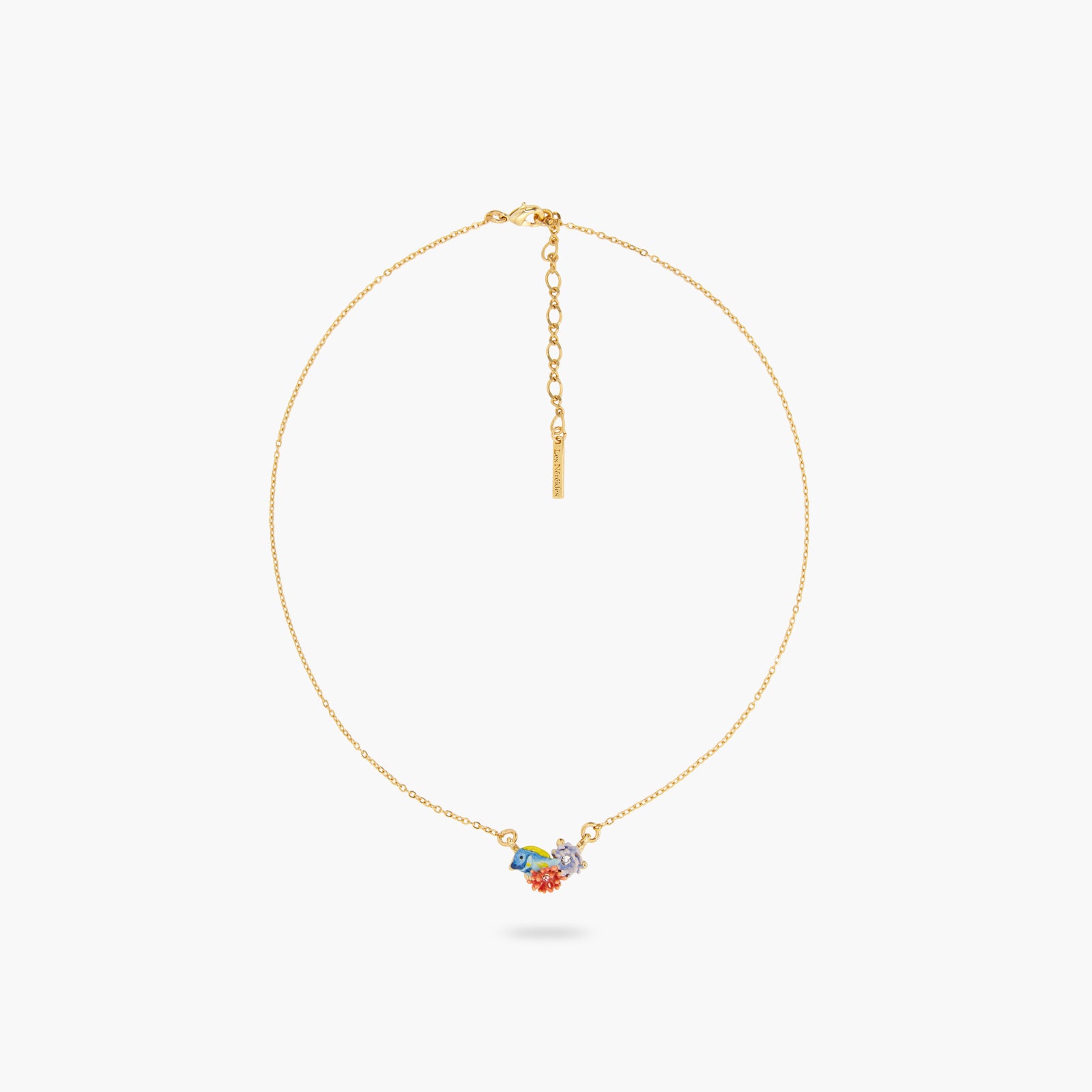 Blue Fish And Pink Anemone Pendant Necklace | ATPR3051